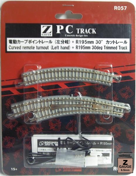 Rokuhan R057 Z PC (Concrete Ties) LH Left Curved Turnout Manufacturer: Rokuhan (Made in China)