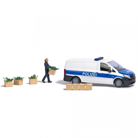 Busch Action Sets are easy to add on any H0 scale model railroad layout, diorama or display. The scenes are created according to special themes. Each set includes a mix of accessories and at least one appropriate, painted figure. The police raid was successful: more hemp is grown here than officially allowed! Set includes police vehicle, policewoman and boxes full of files and confiscated hemp plants. *** Photos may show additional scenery, structures, figures, vehicles, tools, etc which are not included. Please ask before ordering if you're unsure what's included. Most structures are kits which require assembly. *** UPC: 4001738798708
