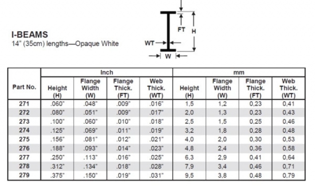 Evergreen 273 0.100" (2.5mm) x 14" Opaque White Polystyrene I-Beam (4/pkg) Manufacturer: Evergreen Scale Models (Made in USA)