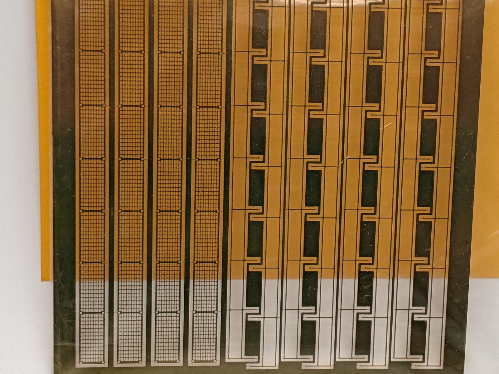 192 scale feet of 4 wide perforated walkways with two handrails for both sides. For use in petrochemical plants, grain elevators, tank farms and locomotive servicing facilities. Etched in .013" brass. |