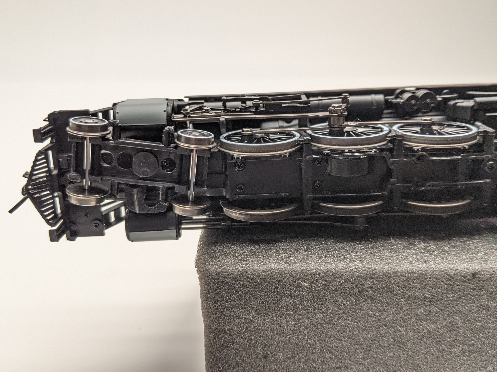 Local purchase from a large high end collection FEATURES - NEW Paragon3 Sound & Operation System FEATURING ROLLING THUNDERTM with Authentic Sounds and Prototypical Operation in both DC and DCC environments - Locomotive Composition: ABS Body with Die Cast Chassis - Tender Composition: ABS Body with Die Cast Chassis - Couplers: (2) Operating Kadee or Compatible - Compatible Tracks: Code 70, 83, 100 Rail - Equipped with Traction Tires - Minimum Operating Radius: 18 in or greater The Pacific-type locomotive evolved as the need for power and speed increased. First, the four-wheel leading truck delivered stability at the faster speeds. Second, six tall drivers provided pulling power and speed. Last, a two-wheel trailing truck provided support for a larger firebox. The sum of this design was the 4-6-2 USRA Pacific. The USRA designation for light and heavy locomotives was a function of the track's ability to withstand weight. Excessive axle weight could damage the rails, loosen fastenings, and also cause damage to the locomotive. The USRA deemed a maximum of 54,000 pounds per axle as a light locomotive. The USRA Light Pacific weighed in at 277,000 lbs, with a 73 inch driver diameter and a boiler pressure of 200 lb/in. |