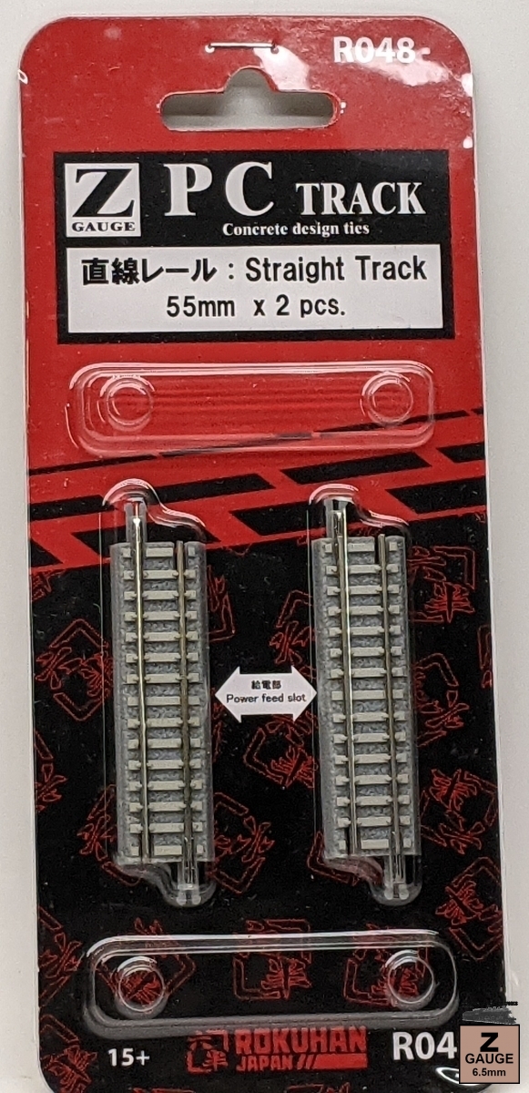Rokuhan R048 Z PC (Concrete Ties) Straight Track 55mm (2pcs) Manufacturer: Rokuhan (Made in China)