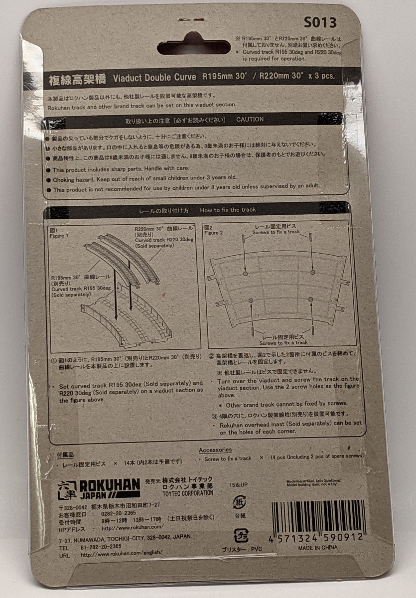 Rokuhan S013 Z Viaduct Base Double Curve R195/220 30degree (3pcs) Manufacturer: Rokuhan (Made in China)