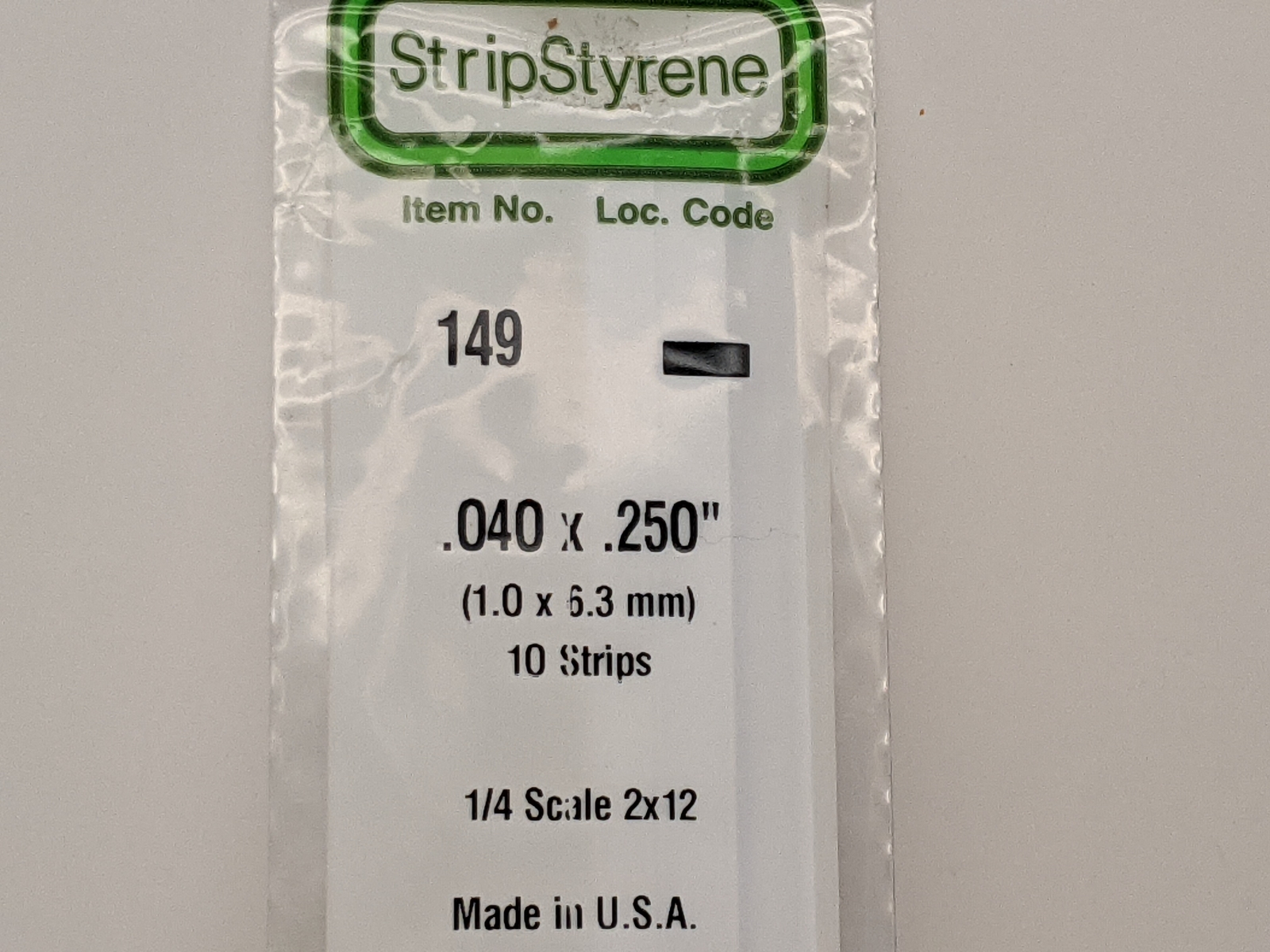 Evergreen 149 0.040" x 0.250" (1.0mm x 6.3mm) Strips 1/4 Scale 2x12 10pcs Manufacturer: Evergreen Scale Models (Made in USA)
