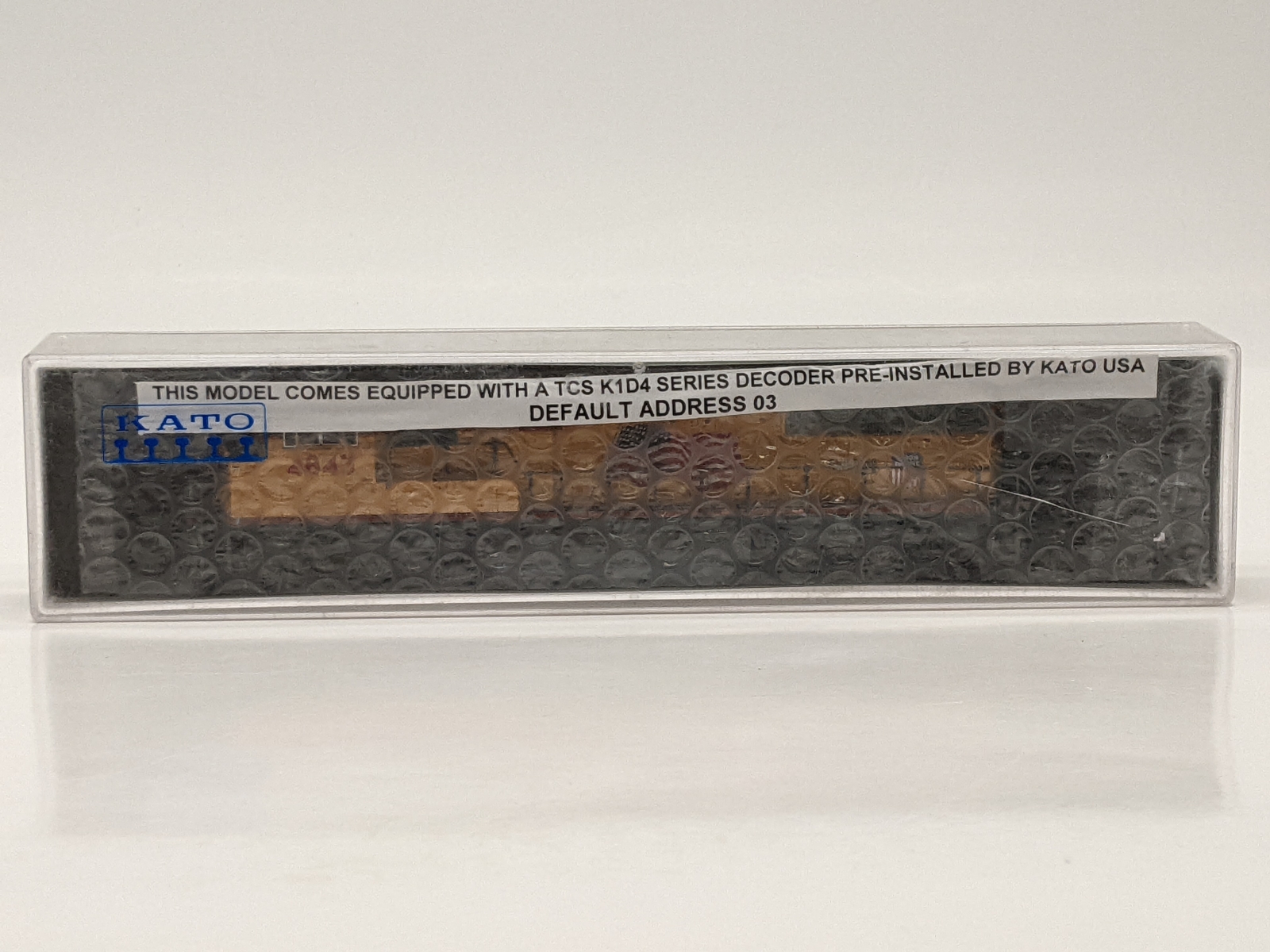 From a store buyout, probably new old stock, it looks to be in new condition with no obvious issues or signs of use. Runs nicely both directions, lights work. Factory installed TCS DCC. Includes original packaging and unapplied detail parts. Some light shelf wear and small crack to case. |