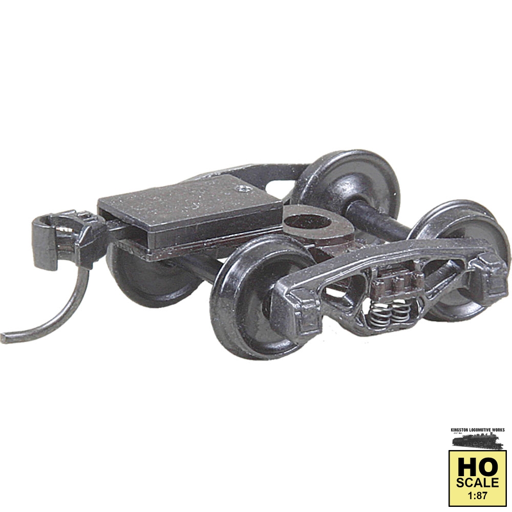 Metal Fully Sprung Trucks Features: Ready-To-Mount #148 Metal Whisker® Couplers Code 110 (.110) #520 33" Smooth Back Wheels Accurate Markings Incredible Detail True to Prototype Non-Magnetic Metal Wheels Highly Flexible Sprung Trucks Metal Sideframes & Fully Sprung Bolster Smooth tracking Free Rolling Contoured Insulated Plastic Axles RP-25 Free Rolling Wheels #637 HO Scale Truck Springs Package Includes: (2) Each #502 Bettendorf 50-ton Trucks with Coupler Platform (assembled) (2) Each #148 Metal Whisker® Couplers (2) Each Coupler Gearbox (2) Each 0-48 Screw (2) Each Insulated Bushing (2) Each #209 Gray Insulating Fiber Washers .010" (2) #622 Knuckle Springs UPC: 765484005025