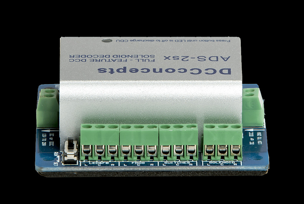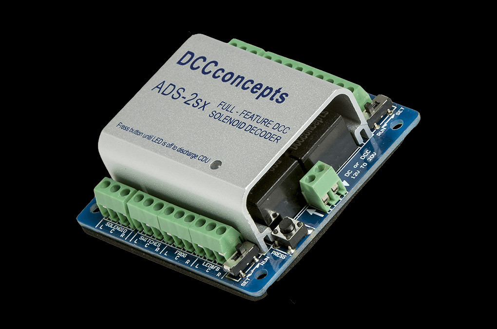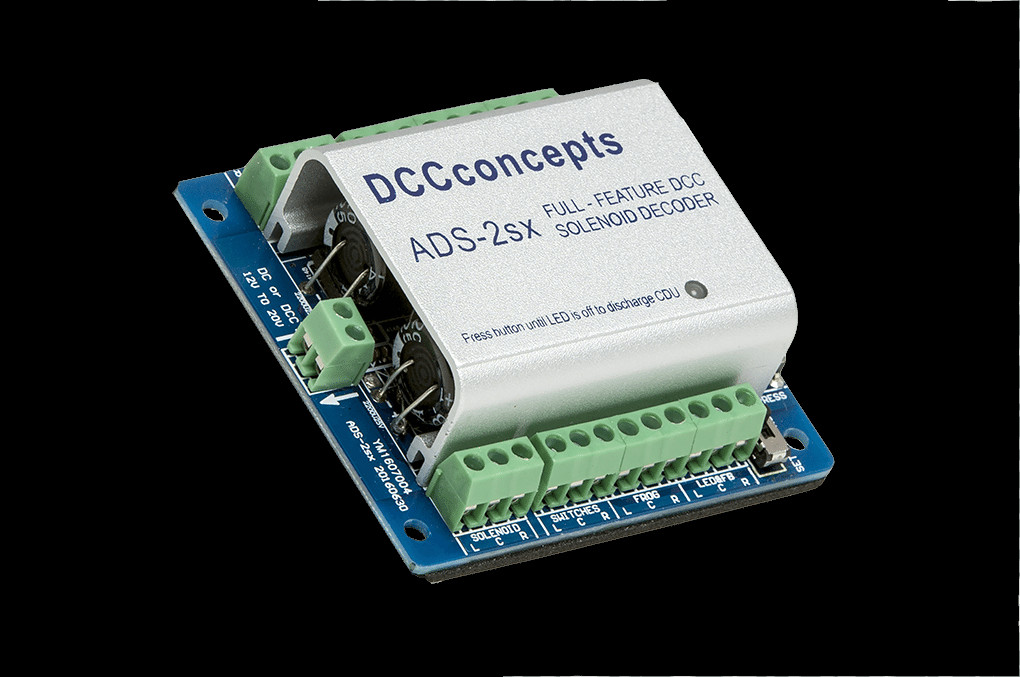 DCC Concepts DCD-ADS-2sx Accessory Decoder CDU Solenoid Drive SX 2-Way with Power-Off Memory and Protective Case Manufacturer: DCC Concepts (Made in China)