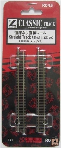 Rokuhan R045 Z Straight Track 110mm No Roadbed (2pcs) Manufacturer: Rokuhan (Made in China)