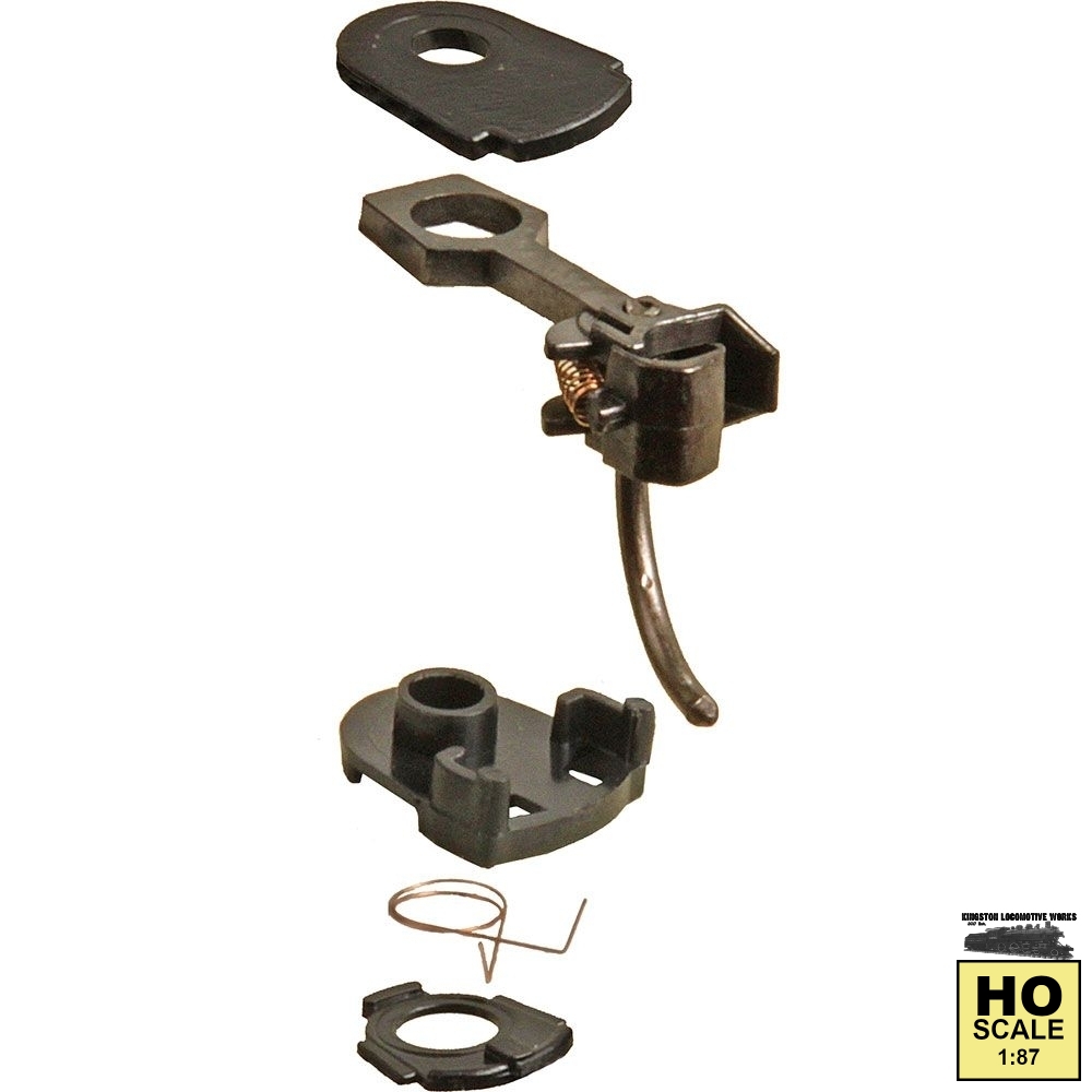 This industry leading coupler features plastic standard coupler with metal knuckle, and #621 torsion centering spring and comes complete with #233 insulated draft gearbox and lid. The #32 Magne-Matic® Plastic Coupler is designed mostly for body mounting with limited space either above or below the mounting platform, with or without Draft Gear Box Lid and with Draft Gearbox Lid either on top or bottom. Note: The 30-Series Torsion Spring can be mounted either below or above the coupler shank, but must always be mounted between the Coupler Spring Lid and Draft Gearbox. The #142 Whisker® Metal Coupler mounted in a #252 Snap-together Gearbox is equivalent to the #32 Coupler. The Whisker® Coupler mounted in a #252 Snap-together Gear box makes for simple and easy assembly. It is not recommended to use a metal coupler directly on a metal surface or in a metal draft gearbox to avoid possible electrical crossover and shorting that may cause damage. Package Includes: (2) Pair #32 Plastic Shank Couplers - Medium Overset Shank (2) Pair #621 Torsion Centering Spring (2) Pair #233 Gearboxes & Lids (2) Pair #210 Washers (2) Pair #256 - 2-56 Screws (2) #622 Knuckle Springs #32 Plastic Coupler Features: Material - Metal Knuckle, Plastic Coupler Shank Shank Length - Medium (9/32") (center hole to back of coupler head) Coupler Offset - Overset Knuckle Spring - #622 Centering System - Standard Shank Centering Spring - #621 Torsion Centering Spring Head - Standard Head Works With - #233 draft gearboxes #233 Plastic Draft Gearboxes & Lids Features: Material - Insulated Plastic Dimensions - 3/8"L x 5/16"W x 9/64"H Works With - NO.5®, #58, 20-Series Couplers #32 in a #233 gearbox on top. Mounting Specifications: Mounting Height - 35/64" Centerline - 25/64" Trip Pin Height - 1/32" Center Hole - 2-56 Insulated Screws are the most commonly used. (Screw length will vary) #32 in a #233 gearbox on bottom. Mounting Specifications: Mounting Height - 1/2" Centerline - 25/64" Trip Pin Height - 1/32" Center Hole - 2-56 Insulated Screws are the most commonly used. (Screw length will vary) UPC: 765484000327