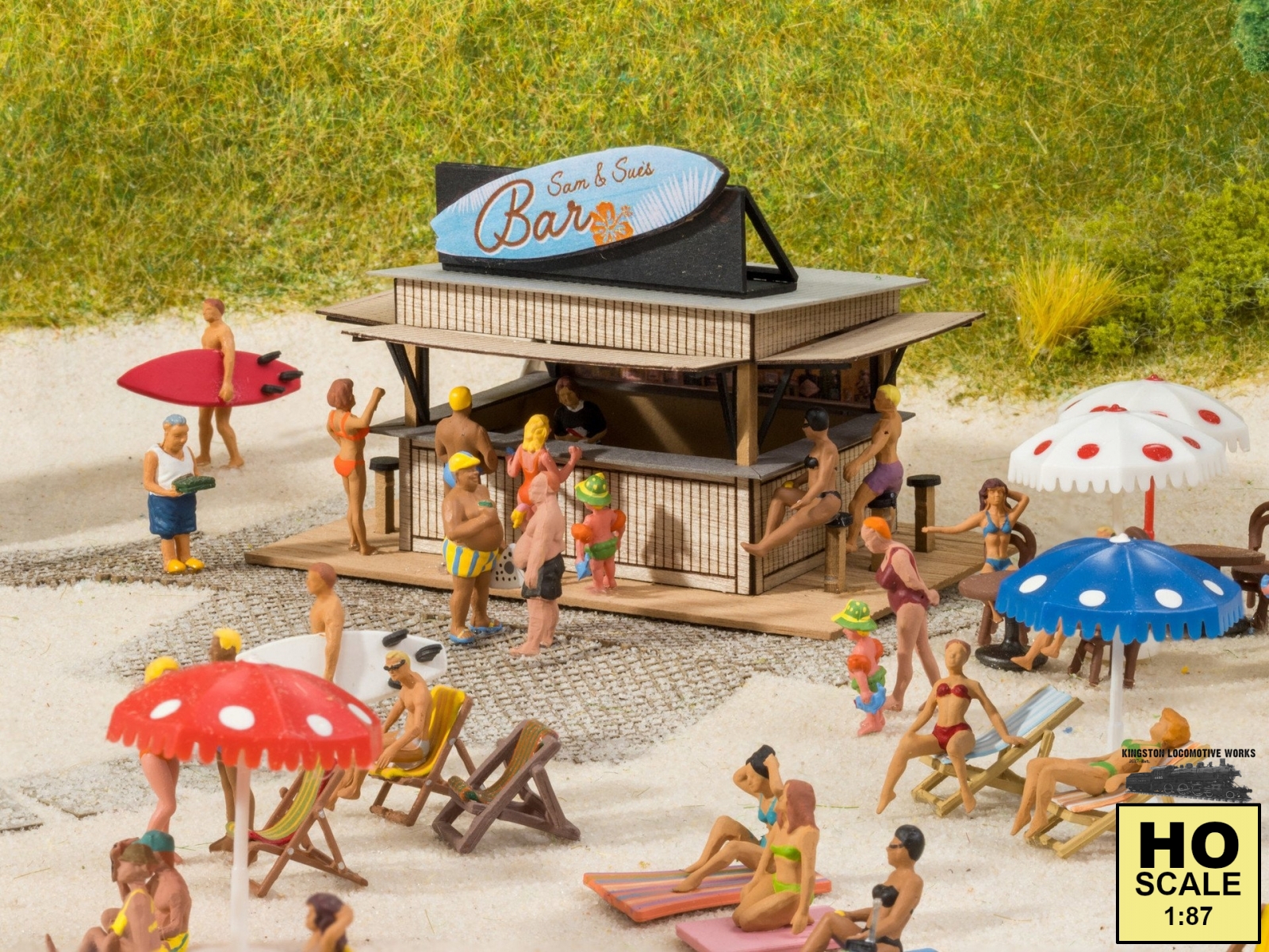 Cooling Off with a Refreshment at the Beach Bar NOCH Laser-Cut minis – by now an institution. The kits are available for a low price, and they are sure to find a place on every model railway layout. Just let yourself be inspired by our wide variety of topics! The “Beach Bar” is ideal for recreating summer scenes even more realistically on every model landscape. On hot summer days, people are drawn outside to cool lakes, outdoor swimming pools, rivers or streams. Otherwise, the hot temperatures are hard to bear. So, a chance to cool off at the “Beach Bar” should not be missing, of course. A cold beer, water, lemonade or juice – there’s something for everyone here. Recreate detailed landscape scenes with the lovingly designed Laser-Cut minis. *** Photos may show additional scenery, structures, figures, vehicles, tools, etc which are not included. Please ask before ordering if you're unsure what's included. *** Gauge: H0 Product Notices: Laser cut UPC: 4007246142606