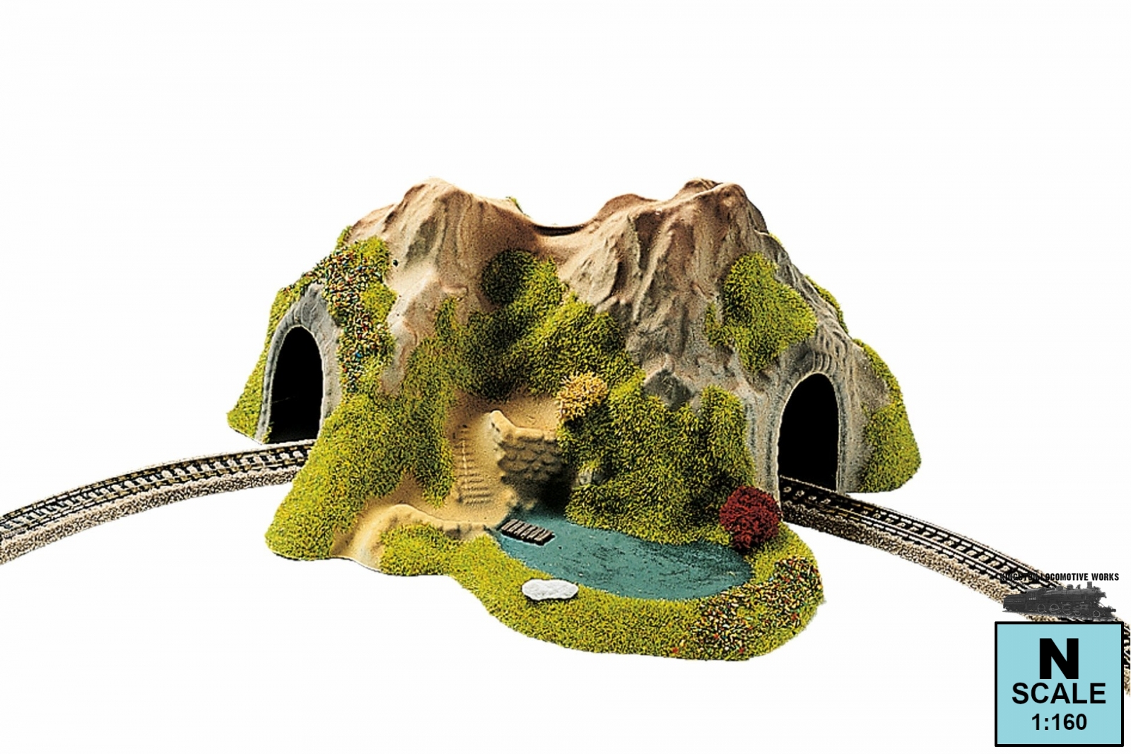 A Model Railway Line without a Tunnel Is Like a Locomotive without Any Carriages! If you want to introduce some variety to your railway line in a simple way, tunnels are the best solution. It isn’t just children that are fascinated by the sight of a train disappearing into one end of a tunnel and appearing on the other! The “Single-Track Corner Tunnel” from NOCH is perfect for filling every model landscape scene with even more realistic details. The train makes its way through the beautiful landscape. A corner tunnel is ideal for crossing rocks, mountain ranges, slopes and other sections of nature safely. Devise your own custom model railway layout and draw attention to it perfectly with details like the “Corner Tunnel”. NOCH Tunnels make it particularly easy for you: they are handpainted in natural colours, covered with grass, and usually also have additional decoration. NOCH Tunnels are also ideal parts of the landscape for first model landscapes. *** Photos may show additional scenery, structures, figures, vehicles, tools, etc which are not included. Please ask before ordering if you're unsure what's included. *** Width: 250 mm Height: 120 mm Length: 250 mm Gauge: N Product Notices: Hand colored UPC: 4007246346608