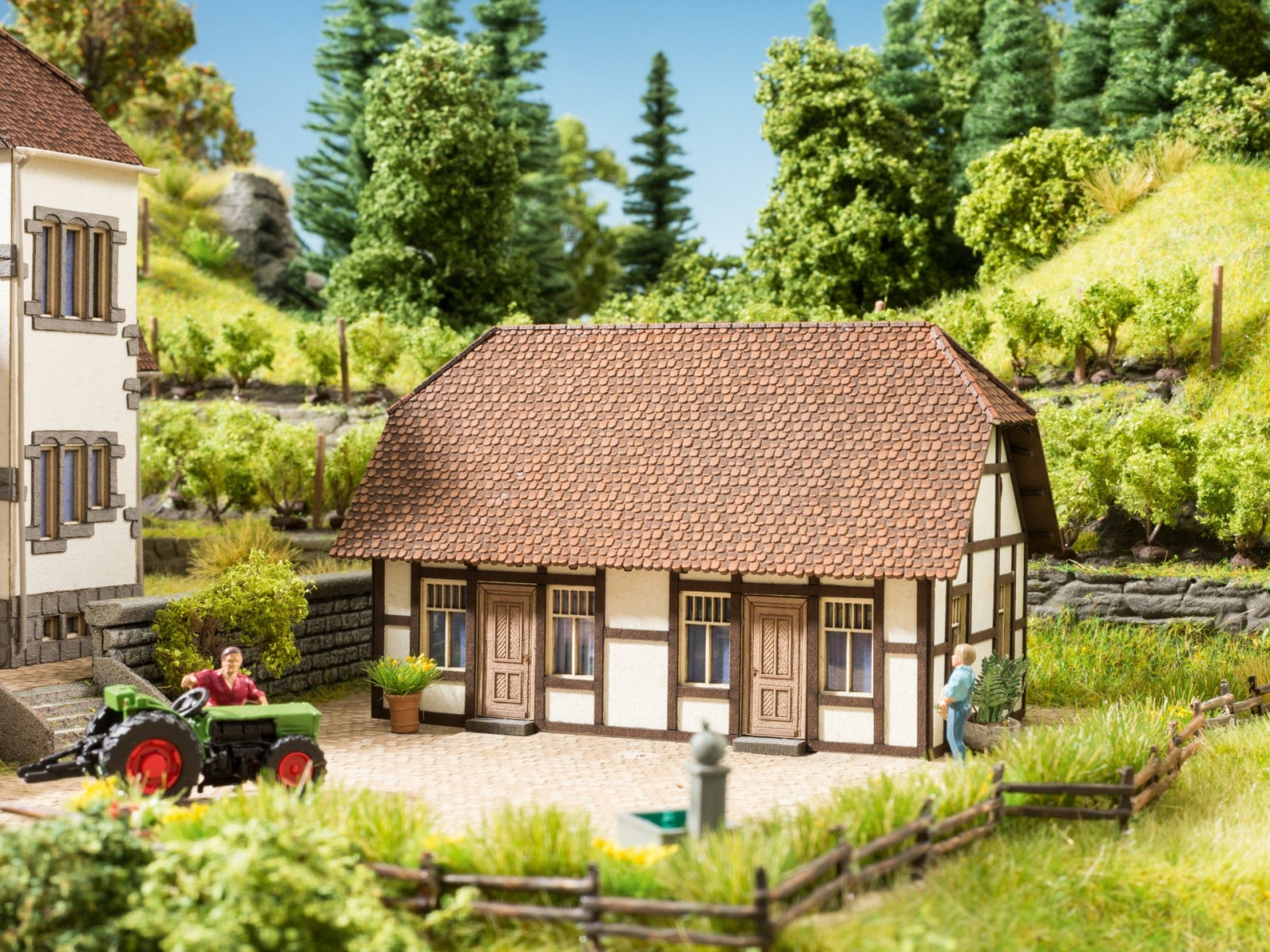 "In Vino Veritas" – In Wine, There Is Truth The perfect model world – what’s more fitting than a wine estate? Grapes ripen in a prime location on the vines; the vintner lovingly checks them and knows each variety. This is how high-quality wine is produced. Completely natural and completely organic – without additives. In the evening, you can end your working day at the wine bar. All’s right with the world. The main building houses processing and storage rooms for the wine as well as living spaces and a small wine bar. In addition to homemade wines, the establishment also offers fitting dishes. The beautiful timber-framed building fits perfectly in rural surroundings. Farmhands’ quarters are often located in large courtyards. In the past, maids and servants spent the night in these buildings. Bring the high-quality Laser-Cut Kits to your model landscape and provide idyllic eyecatchers like never before! Wine Estate The kit is modelled on the Winery "Hauser-Bühler" Estate in Bickensohl in the Kaiserstuhl mountain range in Baden-Württemberg. The main building houses processing and storage rooms for the wine as well as living spaces and a small wine bar. In addition to homemade wines, the establishment also offers fitting dishes. The beautiful timber-framed building fits perfectly in rural surroundings. Dimensions: 14.8 x 13.7 cm, 13 cm high Servants' House Farmhands’ quarters are often located in large courtyards. In the past, maids and servants spent the night in these buildings. Dimensions: 11.5 x 6.9 cm, 7.2 cm high Please note: Gutters are not included. The Laser-Cut kit comes with a matching Laser-Cut special Adhesive *** Photos may show additional scenery, structures, figures, vehicles, tools, etc which are not included. Please ask before ordering if you're unsure what's included. *** Gauge: H0 Product Notices: Hand colored, Laser cut UPC: 4007246667123