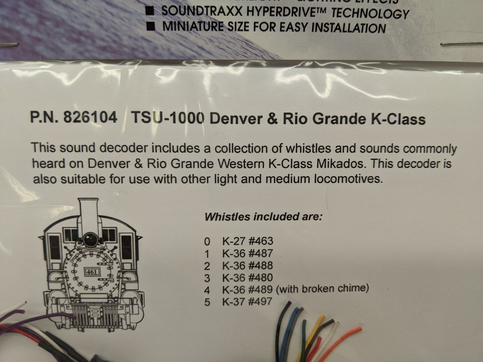 SoundTraxx 826104 TSU-1000 Tsunami Steam D&RGW K-Class DCC/Sound Decoder Manufacturer: SoundTraxx (Made in USA)