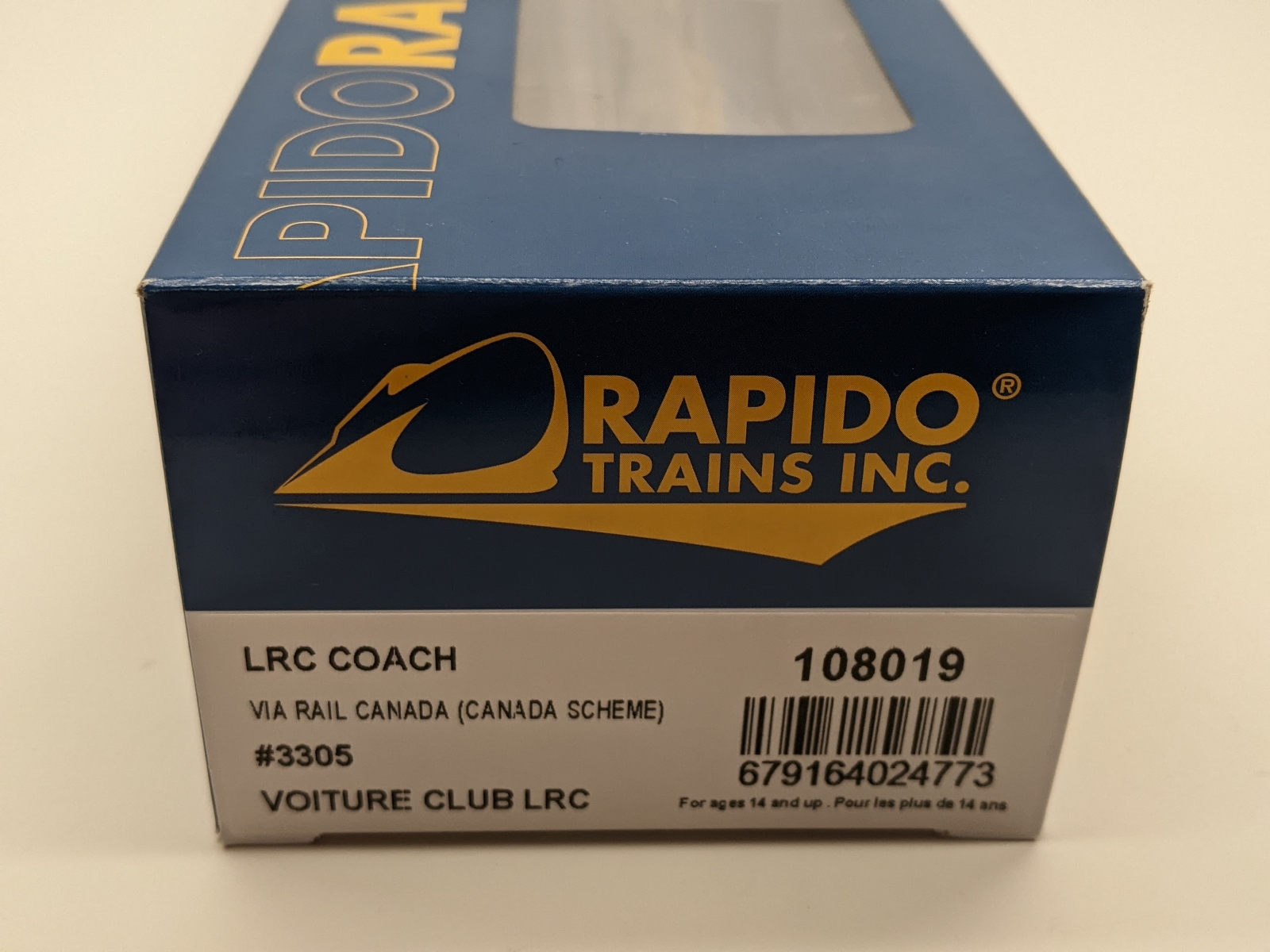 Rapido 108019 HO LRC Coach - VIA Rail "Canada Scheme" #3305 Manufacturer: Rapido Trains (Made in China)