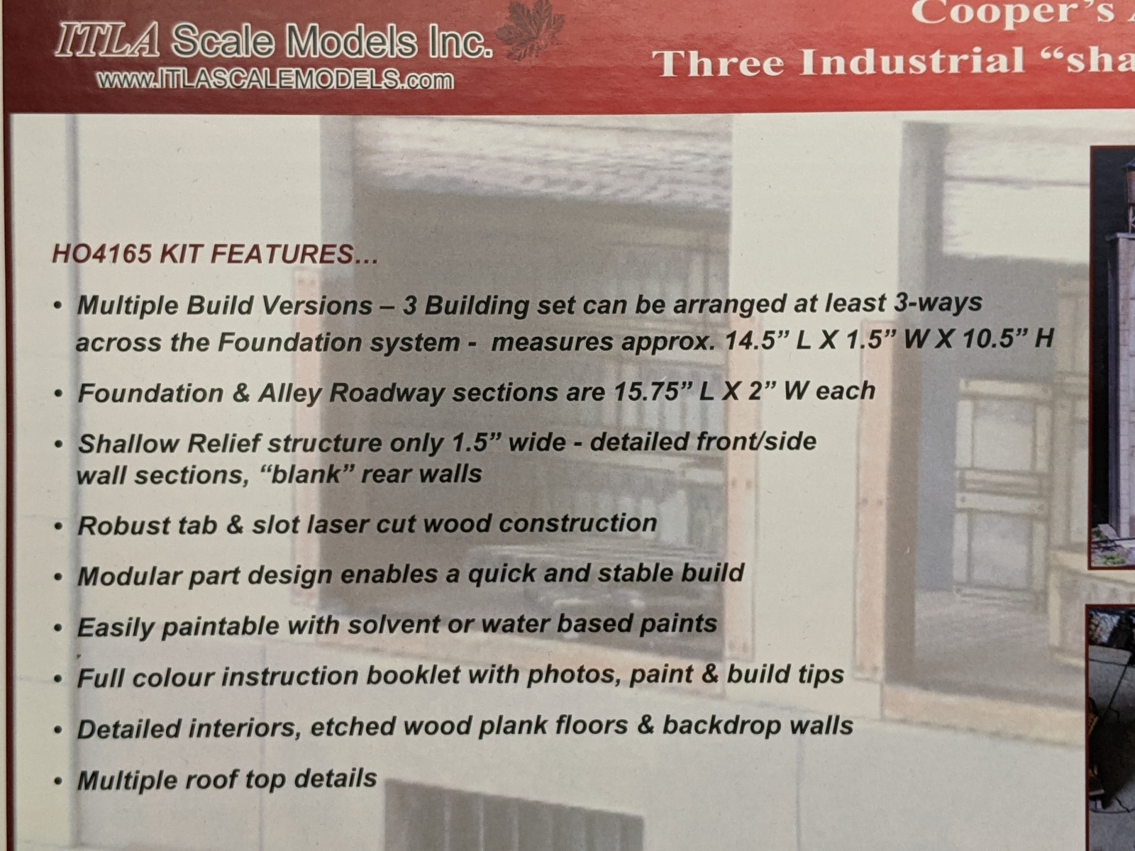 ITLA HO4165 HO Cooper's Alley Laser Cut Wood Buildings Kit Manufacturer: ITLA Scale Models (Made in Canada)