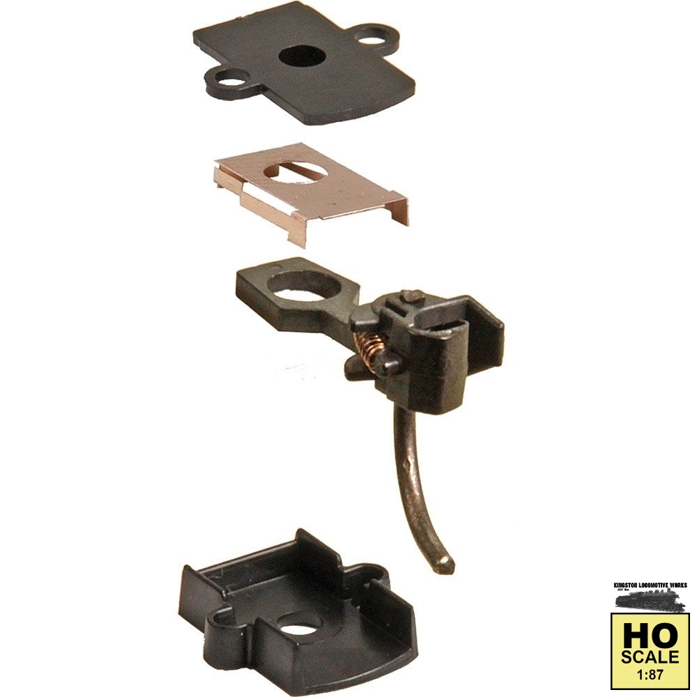 This industry leading coupler features plastic standard coupler with metal knuckle, and #634 standard centering spring and comes complete with insulated draft gearbox and lid. The#24 Magne-Matic® Plastic Coupler may be mounted with the included #213 or #232 Gearbox or with most other manufacturers cast-on coupler pockets. It is not recommended to use a metal coupler directly on a metal surface or in a metal draft gearbox to avoid possible electrical crossover and shorting that may cause damage. Package Includes: (2) Pair #24 Plastic Shank Couplers - Short Underset Shank (2) Pair #634 Centering Spring NO.5® Style (2) Pair #213 055" ID & .100" ID Bushing/Sleeves (2) Pair #212 Talgo Truck Adaptors (2) Pair #213 Gearboxes (2) Pair #232 Gearboxes (2) #622 Knuckle Springs #24 Plastic Coupler Features: Material - Metal Knuckle, Plastic Coupler Shank Shank Length - Short (1/4") (center hole to back of coupler head) Coupler Offset - Underset Knuckle Spring - #622 Centering System - Standard Shank Centering Spring - #634 Centering Spring NO.5® Style Head - Standard Head Works In Place of - #144, short underset "clone" couplers Works With - #213, #232, #234, #242, most manufacturer cast-on draft gearboxes UPC: 765484000242