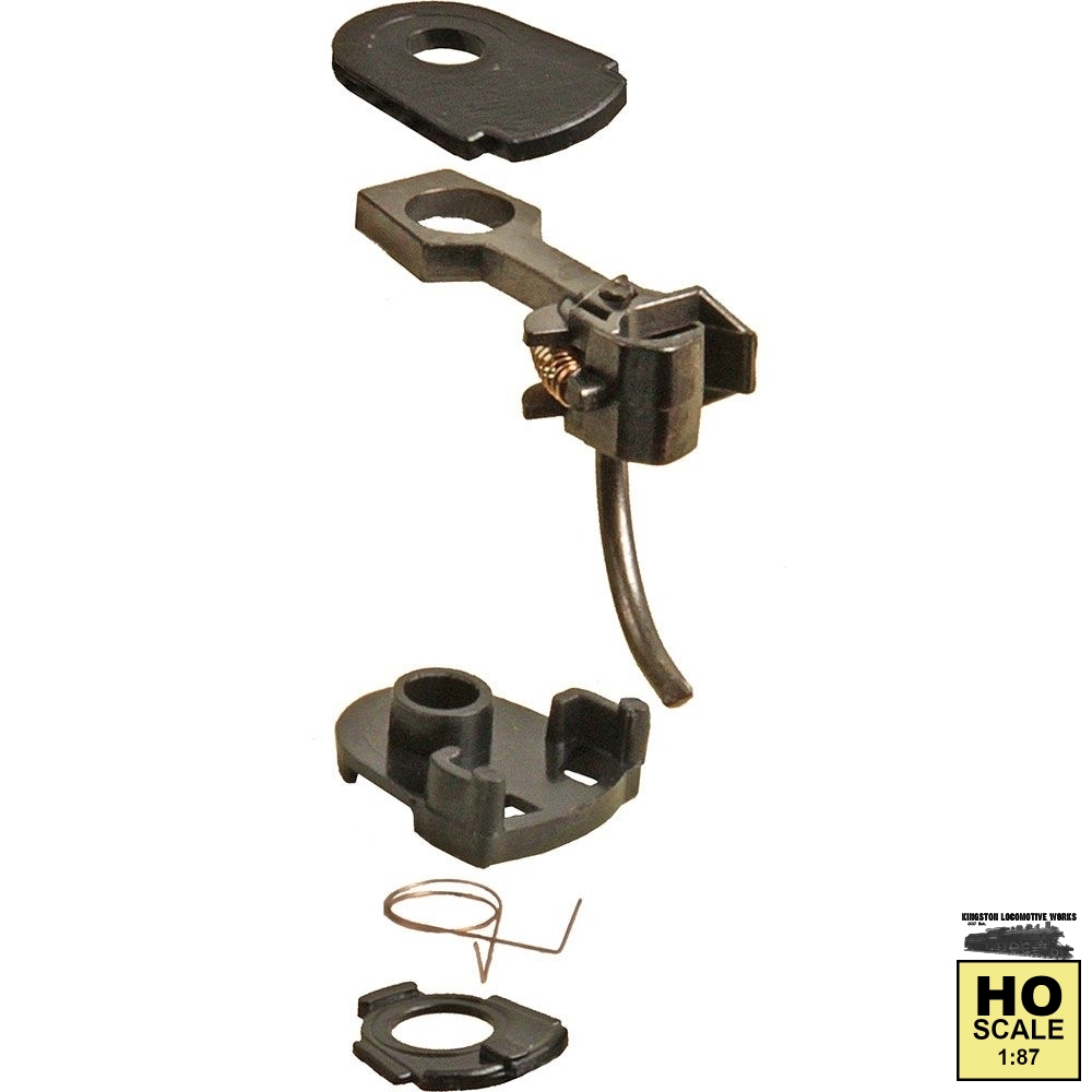 This industry leading coupler features plastic standard coupler with metal knuckle, and #621 torsion centering spring and comes complete with #233 insulated draft gearbox and lid. The #35 Magne-Matic® Plastic Coupler is designed mostly for body mounting with limited space either above or below the mounting platform, with or without Draft Gear Box Lid and with Draft Gearbox Lid either on top or bottom. Note: The 30-Series Torsion Spring can be mounted either below or above the coupler shank, but must always be mounted between the Coupler Spring Lid and Draft Gearbox. The #145 Whisker® Metal Coupler mounted in a #252 Snap-together Gearbox is equivalent to the #35 Coupler. The Whisker® Coupler mounted in a #252 Snap-together Gear box makes for simple and easy assembly. It is not recommended to use a metal coupler directly on a metal surface or in a metal draft gearbox to avoid possible electrical crossover and shorting that may cause damage. Package Includes: (2) Pair #35 Plastic Shank Couplers - Short Overset Shank (2) Pair #621 Torsion Centering Spring (2) Pair #233 Gearboxes & Lids (2) Pair #210 Washers (2) Pair #256 - 2-56 Screws (2) #622 Knuckle Springs #35 Plastic Coupler Features: Material - Metal Knuckle, Plastic Coupler Shank Shank Length - Short (1/4") (center hole to back of coupler head) Coupler Offset - Overset Knuckle Spring - #622 Centering System - Standard Shank Centering Spring - #621 Torsion Centering Spring Head - Standard Head Works With - #233 draft gearboxes #233 Plastic Draft Gearboxes & Lids Features: Material - Insulated Plastic Dimensions - 3/8"L x 5/16"W x 9/64"H Works With - NO.5®, #58, 20-Series Couplers #35 in a #233 gearbox on top. Mounting Specifications: Mounting Height - 35/64" Centerline - 25/64" Trip Pin Height - 1/32" Center Hole - 2-56 Insulated Screws are the most commonly used. (Screw length will vary) #35 in a #233 gearbox on bottom. Mounting Specifications: Mounting Height - 1/2" Centerline - 25/64" Trip Pin Height - 1/32" Center Hole - 2-56 Insulated Screws are the most commonly used. (Screw length will vary) UPC: 765484000358