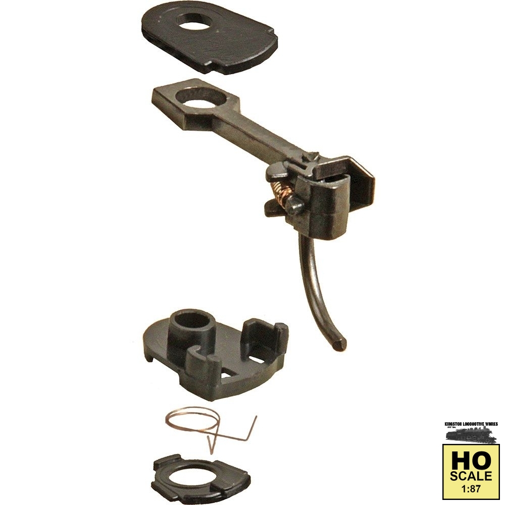 This industry leading coupler features plastic standard coupler with metal knuckle, and #621 torsion centering spring and comes complete with #233 insulated draft gearbox and lid. The #39 Magne-Matic® Plastic Coupler is designed mostly for body mounting with limited space either above or below the mounting platform, with or without Draft Gear Box Lid and with Draft Gearbox Lid either on top or bottom. Note: The 30-Series Torsion Spring can be mounted either below or above the coupler shank, but must always be mounted between the Coupler Spring Lid and Draft Gearbox. The #149 Whisker® Metal Coupler mounted in a #252 Snap-together Gearbox is equivalent to the #39 Coupler. The Whisker® Coupler mounted in a #252 Snap-together Gear box makes for simple and easy assembly. It is not recommended to use a metal coupler directly on a metal surface or in a metal draft gearbox to avoid possible electrical crossover and shorting that may cause damage. Package Includes: (2) Pair #39 Plastic Shank Couplers - Long Overset Shank (2) Pair #621 Torsion Centering Spring (2) Pair #233 Gearboxes & Lids (2) Pair #210 Washers (2) Pair #256 - 2-56 Screws (2) #622 Knuckle Springs #39 Plastic Coupler Features: Material - Metal Knuckle, Plastic Coupler Shank Shank Length - Long (25/64") (center hole to back of coupler head) Coupler Offset - Overset Knuckle Spring - #622 Centering System - Standard Shank Centering Spring - #621 Torsion Centering Spring Head - Standard Head Works With - #233 draft gearboxes #233 Plastic Draft Gearboxes & Lids Features: Material - Insulated Plastic Dimensions - 3/8"L x 5/16"W x 9/64"H Works With - NO.5®, #58, 20-Series Couplers #39 in a #233 gearbox on top. Mounting Specifications: Mounting Height - 35/64" Centerline - 25/64" Trip Pin Height - 1/32" Center Hole - 2-56 Insulated Screws are the most commonly used. (Screw length will vary) #39 in a #233 gearbox on bottom. Mounting Specifications: Mounting Height - 1/2" Centerline - 25/64" Trip Pin Height - 1/32" Center Hole - 2-56 Insulated Screws are the most commonly used. (Screw length will vary) UPC: 765484000396