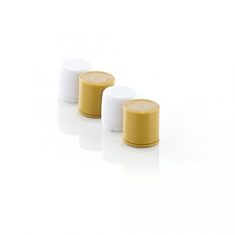 Harvest bales in curry yellow, wrapped round bales in white. UPC: 4006190016063