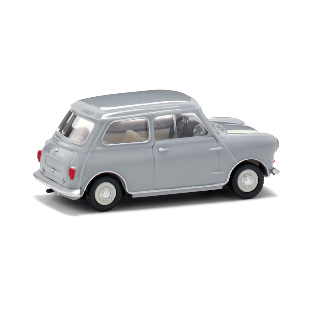 Grey, but by no means subdued, that is how the Austin 7 whooshed all over the British Isles. The Mini has become a core part of British automotive history. When it entered series production in 1959, the petite British Austin 7 was supposed to be conceived as a throwback to the splendid brand tradition of the 1930s. To this end, the agile sub-compact Austin 7 – sometimes even promoted in ads as “Se7en” – was marketed under the name Morris Mini-Minor. In 1969, the car we deem a classic today gained even greater popularity with the founding of the “Mini” brand. While it cannot compare in size with most Jaguar classics, the small and quick-moving vehicle certainly measures up to the Jaguar's significance in British automotive history Chassis and steering wheel (on the right) black-grey. Interior pearl white, dashboard silver-grey. Body silver-grey. Inserted transparent headlamps with a printed silver backing. Bumper and radiator grille painted silver. Front radiator grille imprinted with “Austin 7” emblem. Door handles, ornamental strips, and tank supports painted silver. Front and rear window as well as rear side window frames painted silver. Bonnet with two ornamental strips. Indicators orange, tail lights red UPC: 4006190226066