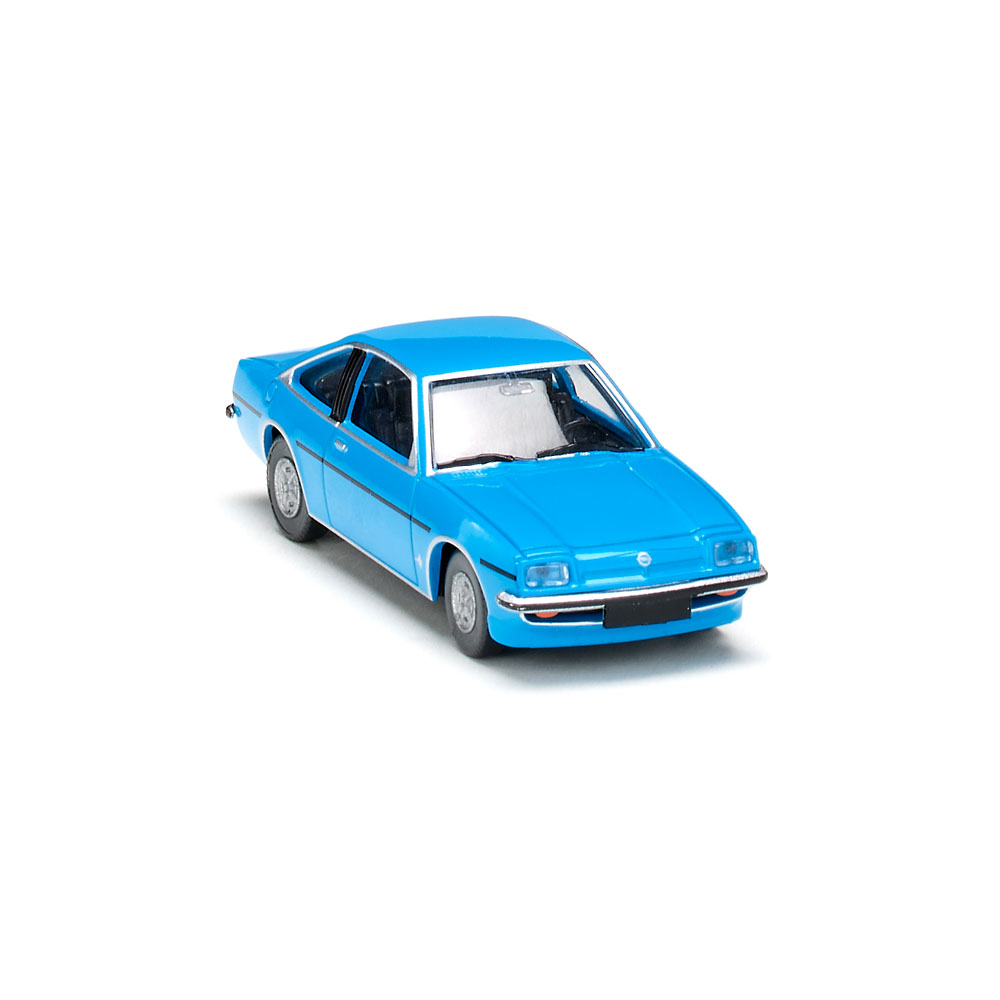 Manta, Manta – WIKING allows the legendary Manta A to link up with its second generation. And, thus, the blue Opel Manta B is celebrating its well-deserved première in the modern classic line-up. Produced between 1975 and 1988, the coupé’s performance ranged from 55 to 110 PS - or, from sedate to sporty. With this addition, WIKING complements the selection with a favoured modern classic that is as popular today as it was back then. Sporting two horizontal cooling air openings, the body forms the harmoniously coherent Manta front that was to become the signature characteristic of this sports coupé. The glazing has been given an engraving of the interior mirror, while the bumpers have been inserted in the chassis. WIKING has designed the unmistakable rectangular headlamps as inserts and used new moulds to craft the interior with a separate steering wheel - naturally sporting two spokes. Body light blue, chassis and interior with steering wheel black. Side ornamental strips and B-column imprinted black. Bumpers with silver print, wheel rims aluminium silver. Tail lights as red inserts. Silver Opel symbol on the front and the rear, rear lettering “Manta” imprinted black. UPC: 4006190234023