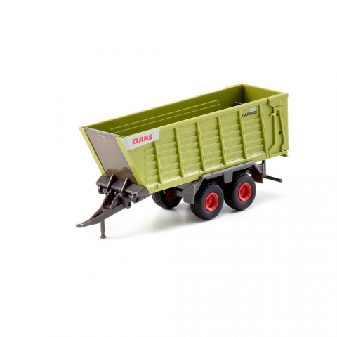 Spacious forage trailers have become indispensable in the realm of large-scale agriculture. And, the Harsewinkel specialist for agricultural machinery made a name for themselves as a full liner a long time ago. WIKING has miniaturised the prototype of the Class Cargos in the version that serves as a chaff transport wagon with rollers and road tyres. Boasting a loading capacity of 45 cubic metres, the two-axle Cargos 750 affords the farms a high level of economy. Its real-life sibling is composed of a full steel superstructure with a scraper floor made of hot-dip galvanised steel – the bulkhead is tilted forward. With the Cargos with tandem axle, Class has introduced a chaff transport wagon whose work performance is in the same range as that of a forage harvester. Naturally, this makes the miniaturised Cargos ideally suited for use with all of WIKING’s large tractor combinations – the design of the rear tailboard offers full movability. But, the Cargos 750 cuts an equally striking figure when paired with a forage harvester in the field. The chassis with draw-bar is equipped to perform the same movements as the original. It is no wonder that the forage wagon has become a popular choice for a wide variety of use cases outside of agriculture. Especially users in the world of forestry have come to appreciate its ability to transport wood chips Superstructure with rear tailboard in Claas green. Bulkhead black, chassis with draw-bar and fenders umbra grey. Wheel rims red. Red Claas lettering on light beige background on the front at the side. "Cargos" lettering in black, model designation "750" in light grey. Red Claas lettering on light beige background also on the rear. Also with black "Cargos" lettering. Maximum speed notice on black-white sign. Rear lamps imprinted red. UPC: 4006190381987