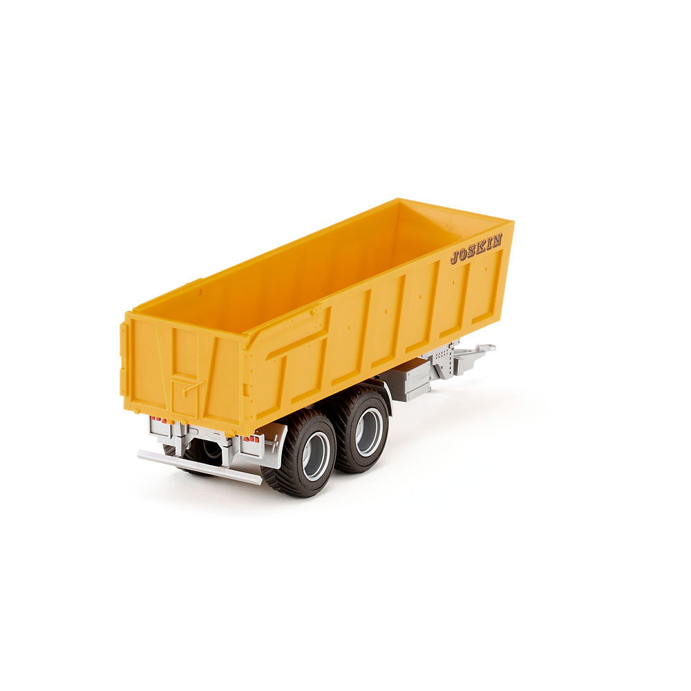 Tipper body with tailgate narcissus yellow. Fenders with underride guard as well as ladder and piston silver-grey. Chassis with towbar, support and power unit silver-grey. Wheel rims likewise silver-grey. Tipper body with black Joskin lettering on both sides. Rear underride guard with carmine red tail lights and reflective triangles. UPC: 4006190388160