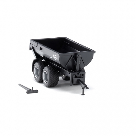 There have not been any colour taboos in agricultural machinery for a while now – black is beautiful. This is why the Krampe Halfpipe tipper trailer now also comes in striking black! Apart from businesses operating in large-scale agriculture, civil engineering, and landscaping, municipal operations rely on Krampe’s Halfpipe to a steadily growing extent. WIKING has realised the HP20 in a way that lets the functional miniature make a meaningful contribution to multi-faceted themes in the 1:87 scale. Following their motto “Quality on Wheels”, the Krampe corporation from Coesfeld-Lette in the Münsterland region has been producing body tippers for agricultural and forestry use as well as for the construction industry, municipal operations and landscaping business since 1983. Krampe adopted the halfpipe body from the lorry sector as it allows for a structure with a rather harmonious formal design. As it eliminates the need for a side and cross member, the “halfpipe” boasts a lower tare weight than the conventional tipper skip. The reduced weight increases the payload of the vehicle – and affords the prototype a permissible gross weight of 20 tonnes. The advantages in day-to-day operations are obvious: Bulk goods slide at a shallower angle along the sides of the skip wall. This eliminates the risk of the skip becoming dented when hauling such “big chunks” as rocks and boulders. Another advantage is that the round shape of the skip keeps bulk goods from sticking to the corners. WIKING’s replication of the hydraulic cylinders on the halfpipe’s front wall is just as true to the original as all other details - from the chassis to the skip. Yet another testimony to the model’s supreme level of functionality in the 1:87 scale. Skip black. Chassis, draw-bar, and foot black, silver wheel rims, black fenders. White model designation “Krampe Kipper Halfpipe”. UPC: 4006190388191