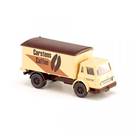 Driver’s cab and box body as well as doors in beige, chassis and roof of box body in chocolate brown. Interior in fawn brown. Radiator grille in silver. Wheel rims in chocolate brown. “International” logo on the front in silver. “Kaffee-Lagerei-Gesellschaft C. Carstens & Cons mbH” printed on the driver’s cab doors over two lines in chocolate brown. Decorative stripe across the side of the box body along with the words “Carstens Caffee” in chocolate brown and orange brown. Hand-painted front radiator grille and headlamps as well as red tail lamps. UPC: 4006190446020