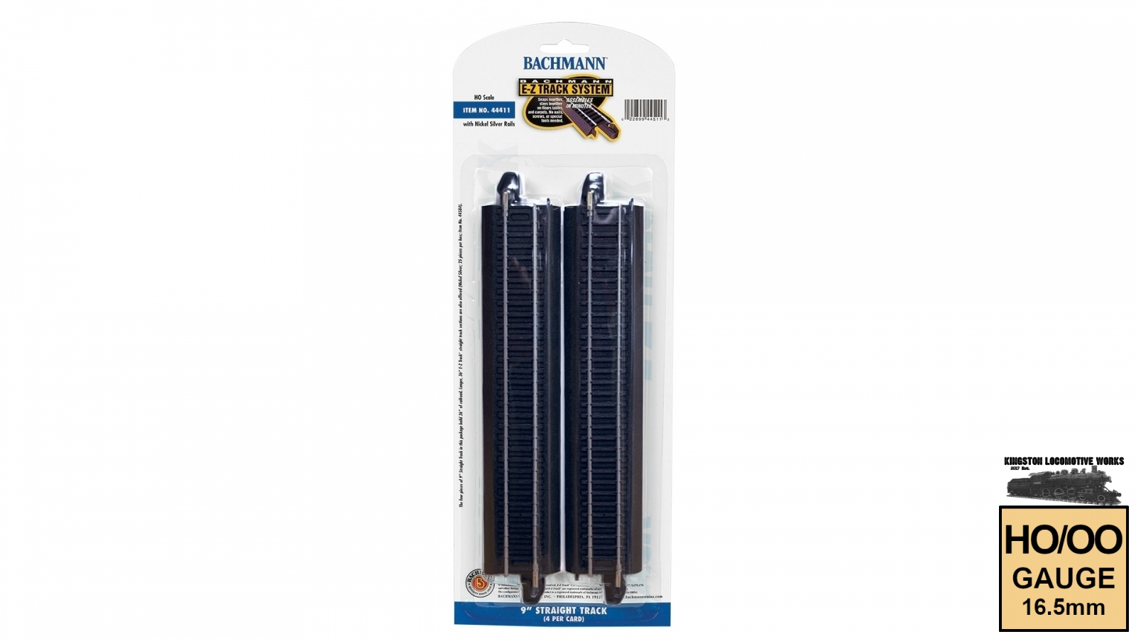 Bachmann 44411 HO 9" Straight EZ Track (Steel Rail / Black Roadbed) (4/pkg) Manufacturer: Bachmann (Made in China)