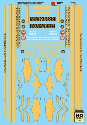 Canadian National H16-44, H24-66 Diesels (1955-1961)-"Diesel - H16-44, H24-66 , RS-3 - Green & Yellow Scheme" - Waterslide Decal - HO Scale |