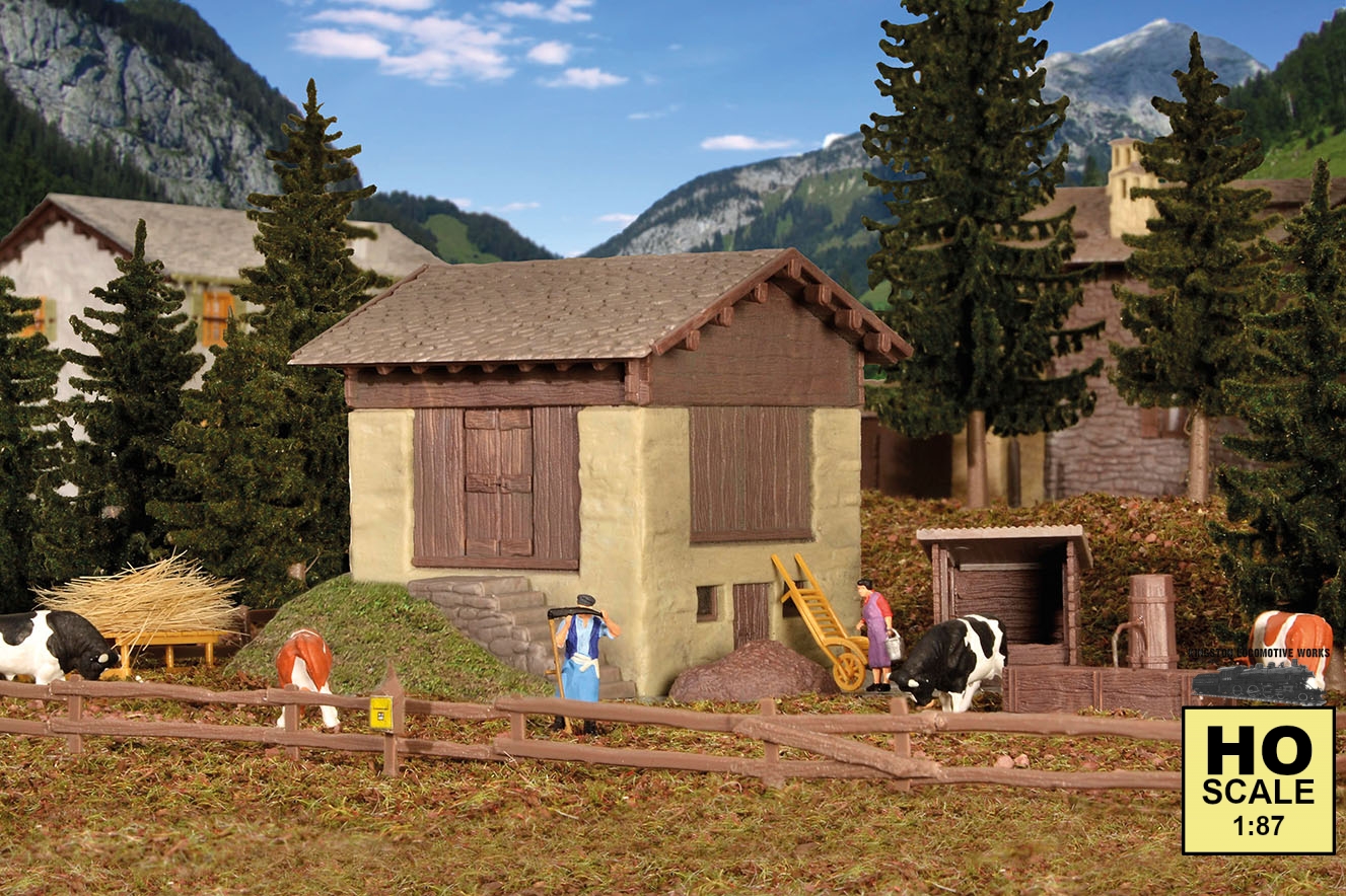 Kibri 38814 HO Barn with accessories in Grevasalvas (Kit) Manufacturer: Kibri (Made in Romania)