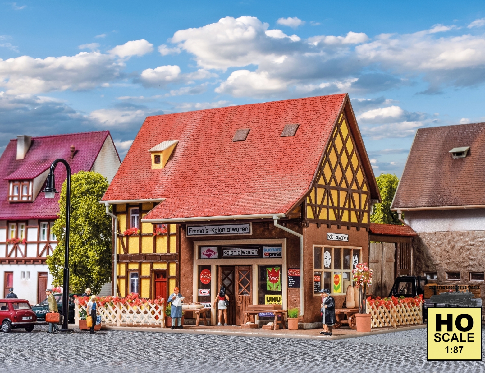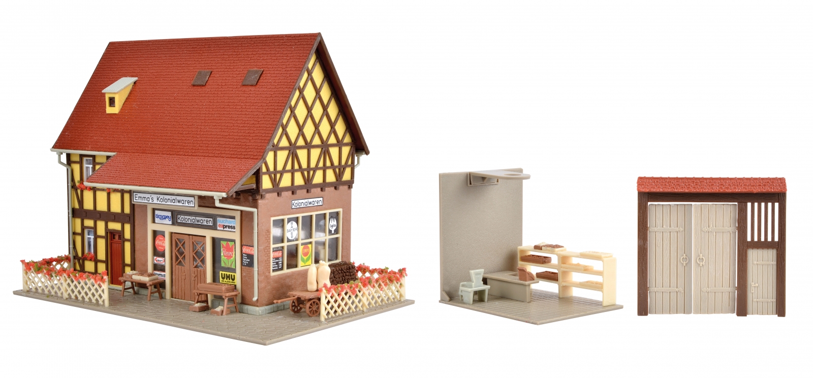 This detailed and realistic corner shop offers rustic romantic feelings on your layout in Vollmer way. The shop is nicely decorated and with attached lighting it becomes an eye-catcher. Dimensions: L 16 x W 10.5 x H 12 cm / Gate L 5.8 x W 1 x H 5.5 cm. Recommended Age: 14+ *** Photos may show additional scenery, structures, figures, vehicles, tools, etc which are not included. Please ask before ordering if you're unsure what's included. *** UPC: 4026602436883