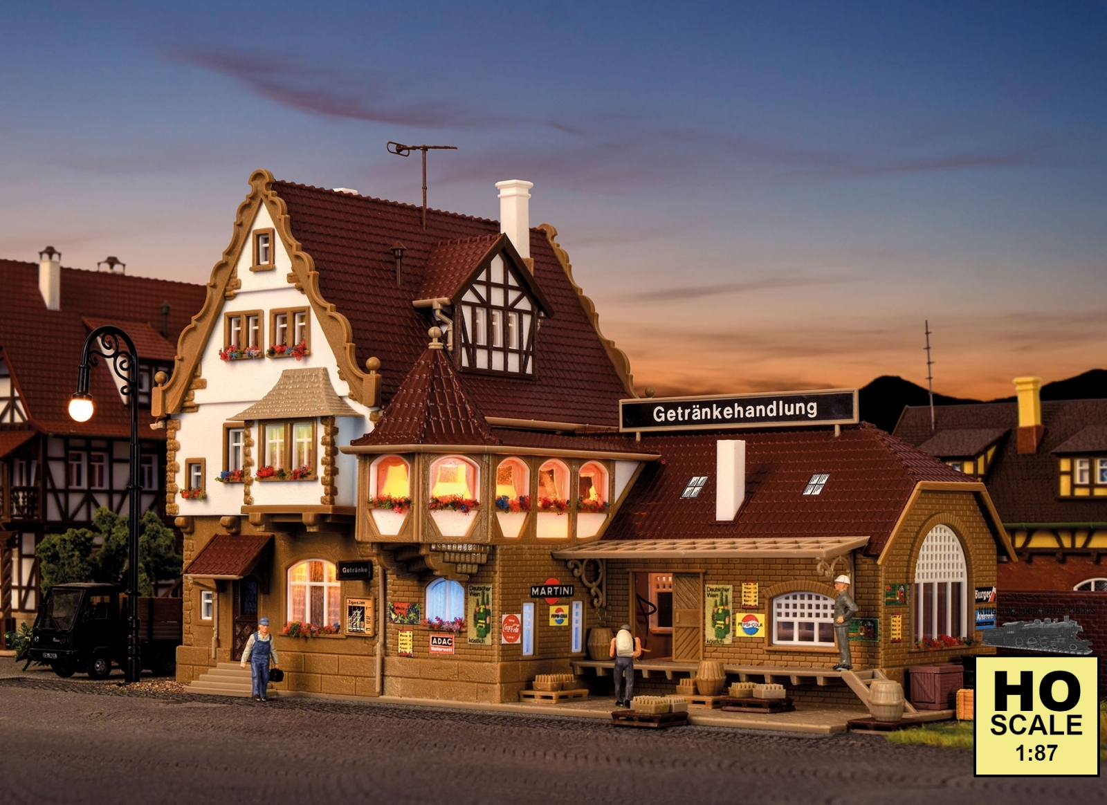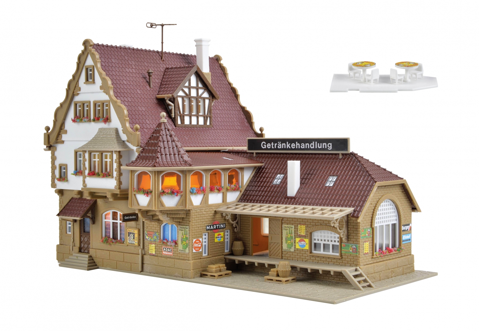 Vollmer 43697 HO Beverage store with interior and LED lighting,functional kit (Kit) Manufacturer: Vollmer (Made in Hungary)