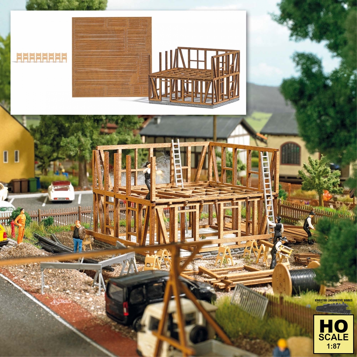 Busch 1371 HO Half-timbered house under construction (Kit) Manufacturer: Busch (Made in Germany)