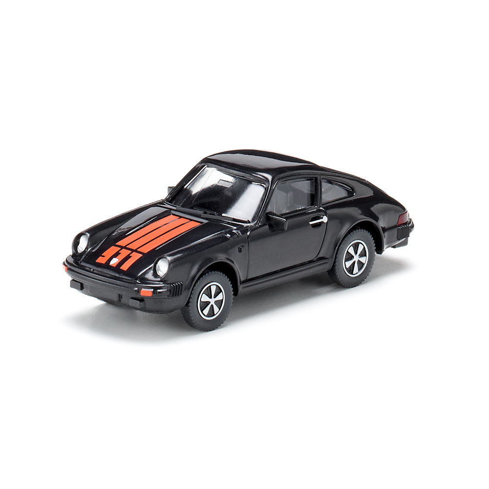 Beauty is in the details - especially in the details of the Porsche 911 SC. Celebrating the โG3โ series with the model-making nostalgia this Porsche generation deserves, WIKING devoted to these models the optimum level of detailing which mimics the original vehicles. Even WIKING's initial release of the Porsche 911 SC four decades ago was received by collectors with overwhelming praise. The "Super Carrera" more than deserved its spot in the 1:87-scale selection of the traditional model makers - even back then. After all, the first "Nine Eleven" had already become a staple at WIKING as well as an integral part of every model railway layout . The traditional model makers have elevated the 911 SC with an eye-catching hood imprint and rigged out the 1:87-scale model with the signature Fuchs wheels. Body and chassis black. Interior with steering wheel also in black. Front hood with wide orange stripe design, which flows into the 911 typography. Door handles and ornamental strips painted silver on the sides. Rear tail-light strip with black โPorscheโ lettering. Headlamps hand-painted silver. Fuchs wheel rims with silver five-star design. UPC: 4006190161039
