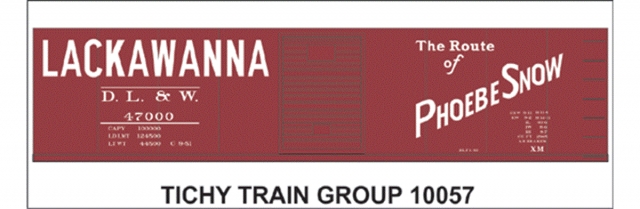Tichy 10057S S DL&W 40' STEEL BOX PHOEBE SNOW DECAL S Manufacturer: Tichy Train Group (Made in USA)
