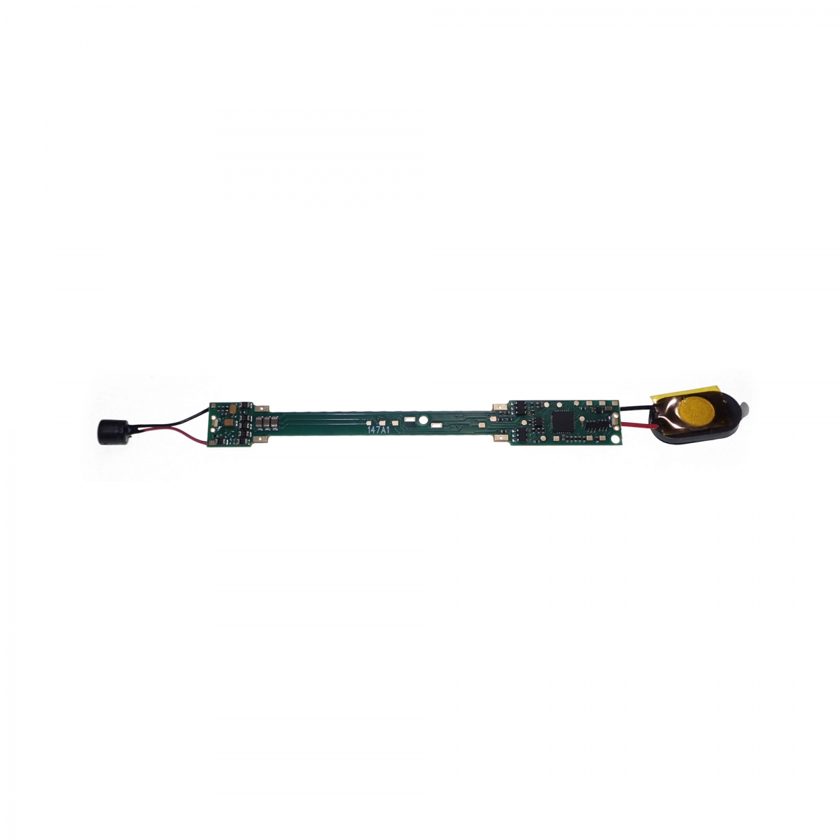 Mobile Decoder with SoundFX Fits several Atlas N locomotives N Scale CV-Selectable Steam & Diesel Sound Schemes Included 1.0 Amp/2 Amps Peak 4 FX3 Functions, 200ma output 8 Ohm 9x18x4 mm oval speaker 100uF Capacitor Digitrax SoundFX®v3 Sound System Your locomotives will sound in scale like the real thing with SoundFX v3 Customizable 16, 12 or 8 Bit Sound Works with SoundFX 8 and 16 Bit sound projects Up to 6 Simultaneous voices Cam input-synchronized steam-chuff option for steam locos Scalable Speed Stabilization(BEMF) configured for sound operation SoundFX does not require an external rate sensor to vary workload. Factory 8 Ohm 9x18x4 mm oval speaker. Smart Power Management- no more booster or programmer shutdowns! Program CVs using any Digitrax Compatible Control system without having to buy any extra equipment. Series 7 Enhanced Decoder Features. Download sound projects or your custom sounds with Digitrax SoundLoader II App using a Digitrax USB Sound Programmer like DCS52/DCS210+/PR4/PR3/DCS240/DCS240+, etc. Digitrax FX3 Functions-Control lights and functions for prototypical lighting effects and on/off control. 4 configurable FX3 Lighting Functions available. Front and rear light white surface mount LEDs. Digitrax LocoMotion® System – Lets your trains run like the real thing! 2 Digit and 4 Digit Addressing. Basic, Advanced & UniVersal Consisting. SuperSonic motor drive for silent operation. Direct and Operations mode programming. Decoder Reset by CV8, with or without speed table reset. Transponder Equipped ready for transponding ID on your Layout. Power-on Motor Isolation Protection, helps prevent damage to your decoder. DCC Compatible. FCC Part 15, Class B RFI compliant. Operates on DCC track voltage 9V minimum. to 18V maximum. Compact size allows use with efficient 1A motor rated HO locomotives. 1 SDXN147A1 Sound Decoder with SoundFX® v3, with 8 Ω 9x18x4 mm oval speaker and 100uF capacitor. 1 Instruction Sheet UPC: 652667200639