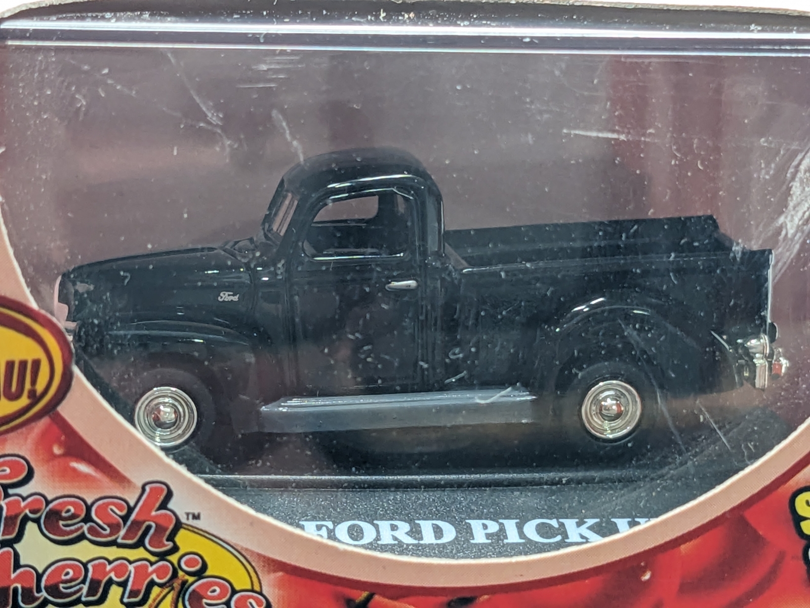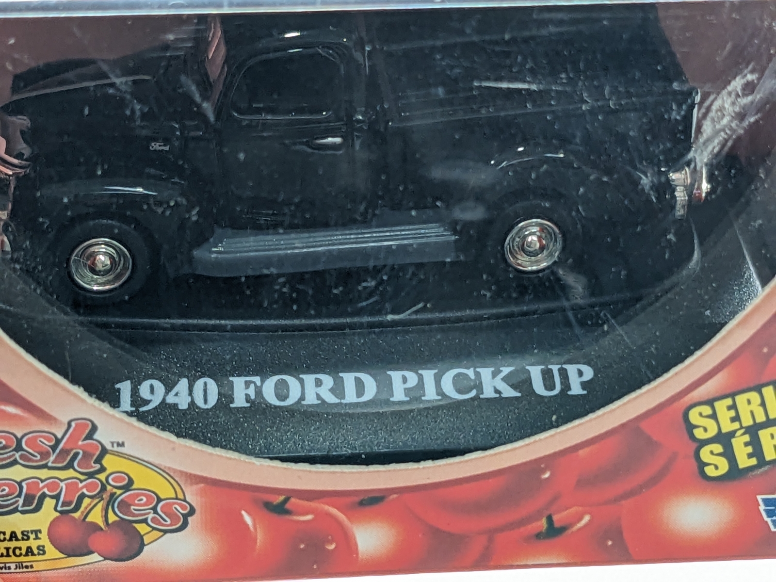 Fresh Cherries package looks to be sealed. Showcases have some wear, cars appear to be in very good condition. Mark on roof of pickup. Description: