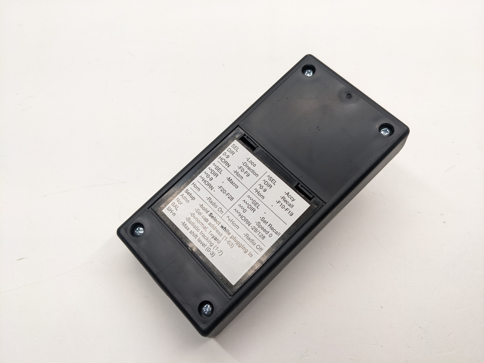 Engineer cab with LED locomotive address display, uses a digital encoder which allows flexibility when controlling multiple locomotives at different speeds. Clear, easy-to-read display, select up to 6 locomotive recalls, 28 functions (F0-F28), accessory control, macro selection. Includes coiled cable. Consignment from an extensive estate collection. UPC: 816757010212