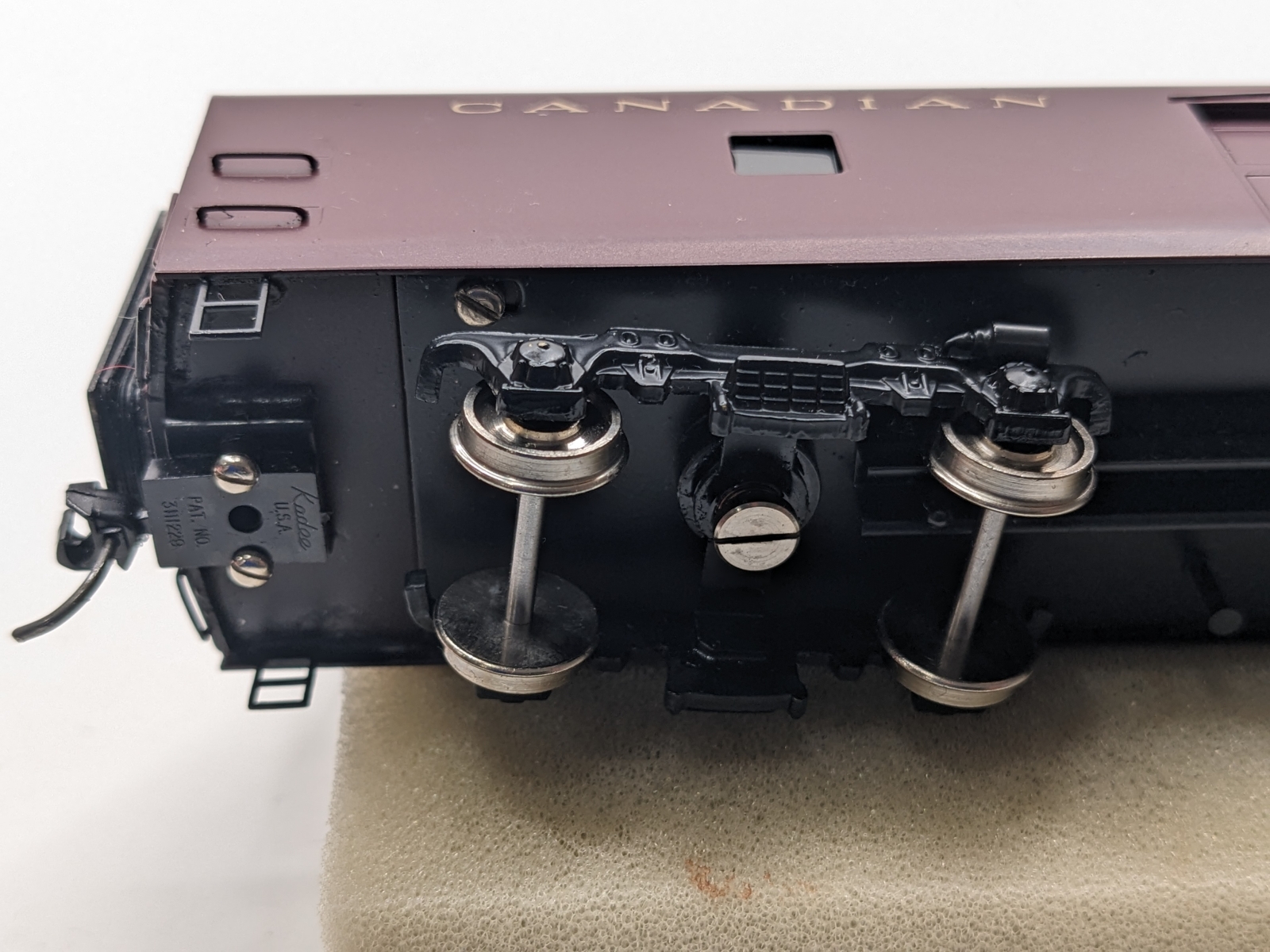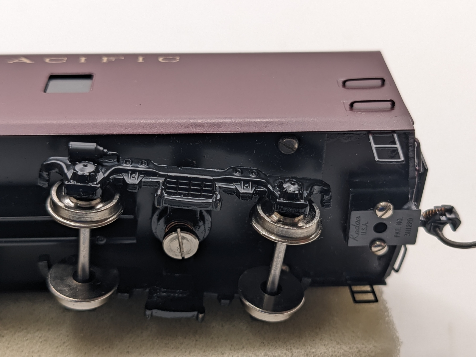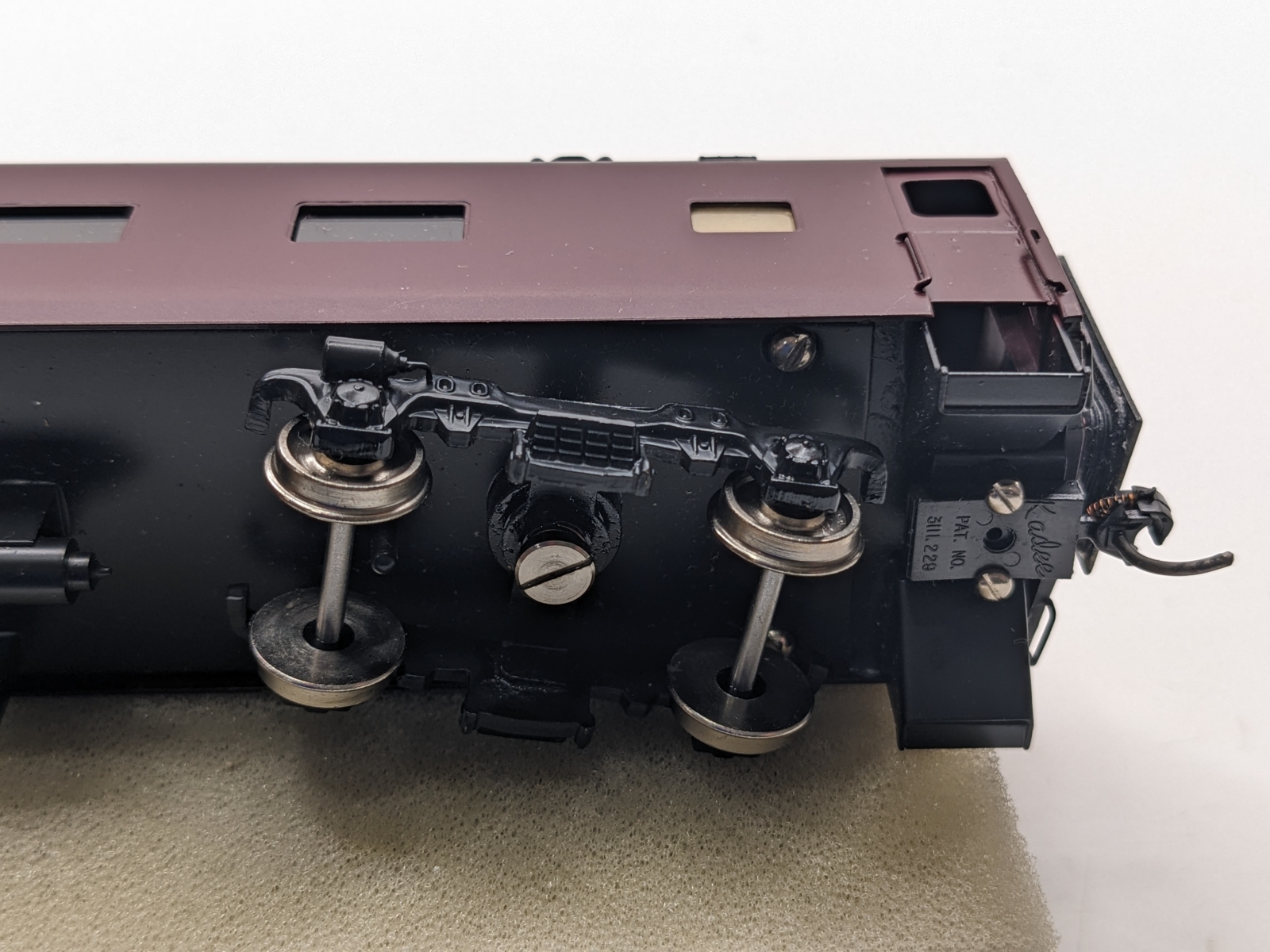 Some light wear and small marks but overall in good condition with no obvious issues. One of the diaphragms is a bit squished and the metal plate needs re-attaching. Cars have window glazing but no interior details. Metal wheels, Kadee metal knuckle couplers. Includes original packaging with good foam as pictured. Description: