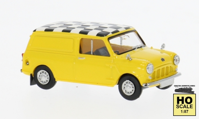 Brekina 15364 HO 1:87 , Austin Mini Countryman, Yellow, 1960, Checkered Flag, Manufacturer: Brekina (Made in China)