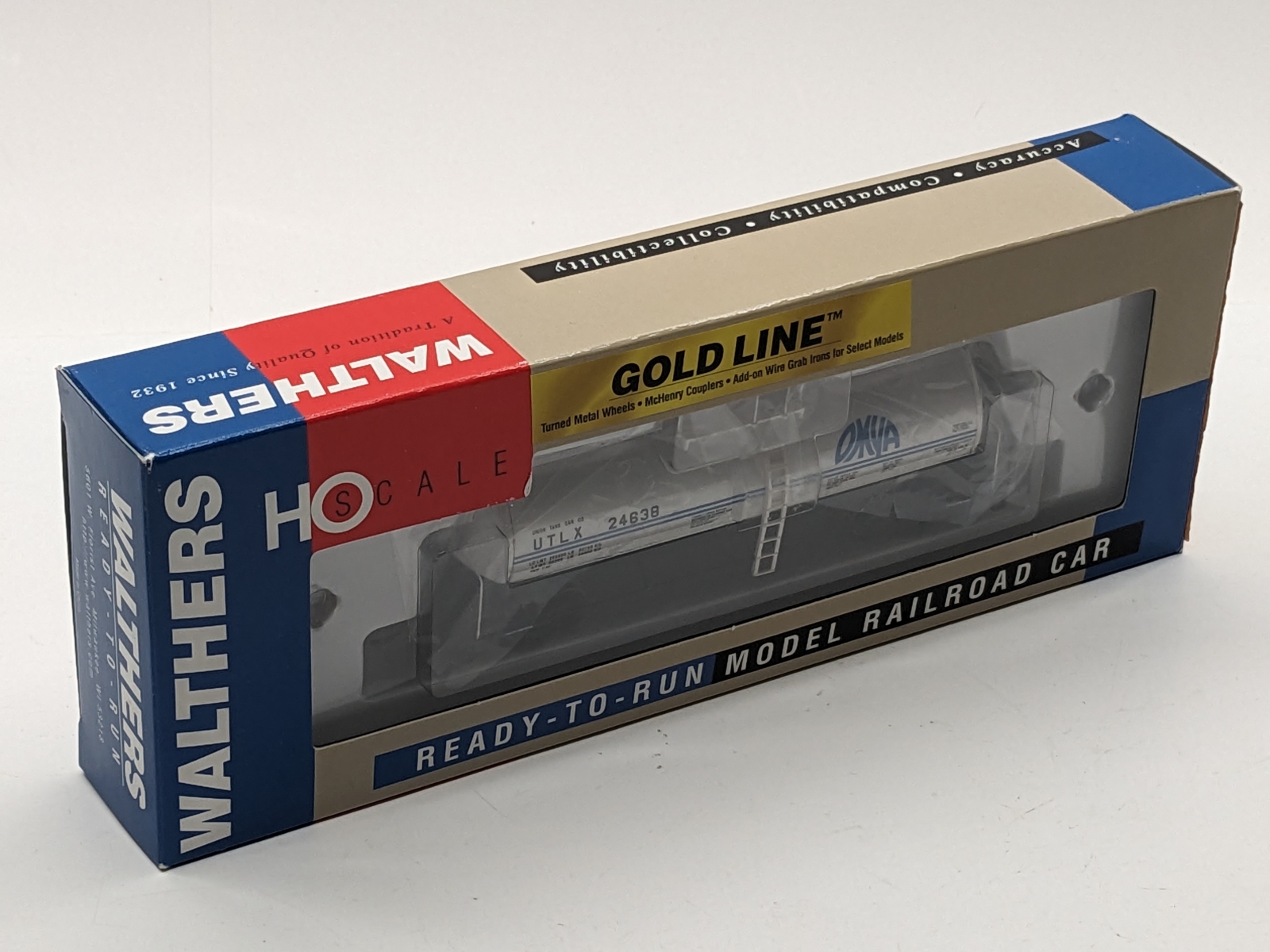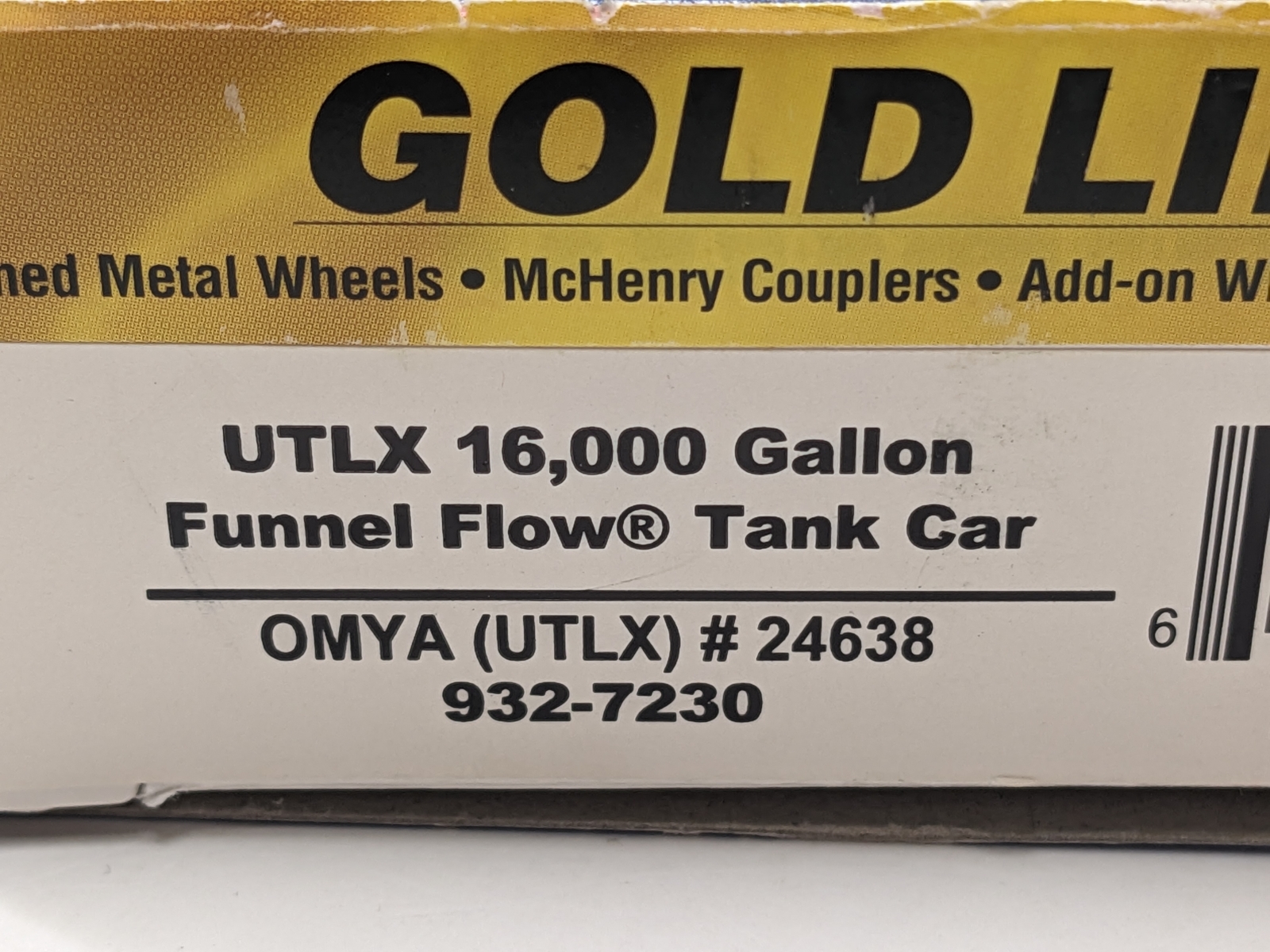 Walthers 932-7230 HO 16K Tank Car - OMYA #UTLX 24638 Manufacturer: Walthers (Made in China)