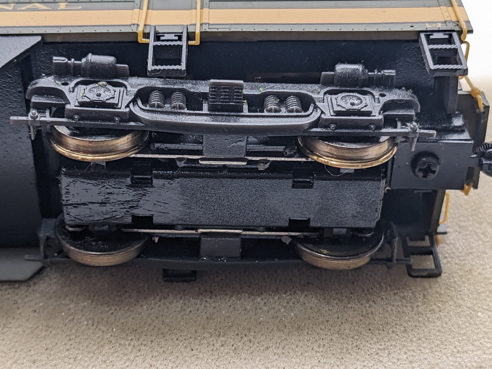 Missing grab iron on left rear corner, otherwise looks to be in good condition. DC, runs nicely both directions. Headlight works. Metal knuckle couplers. Includes original packaging and paperwork. Description: