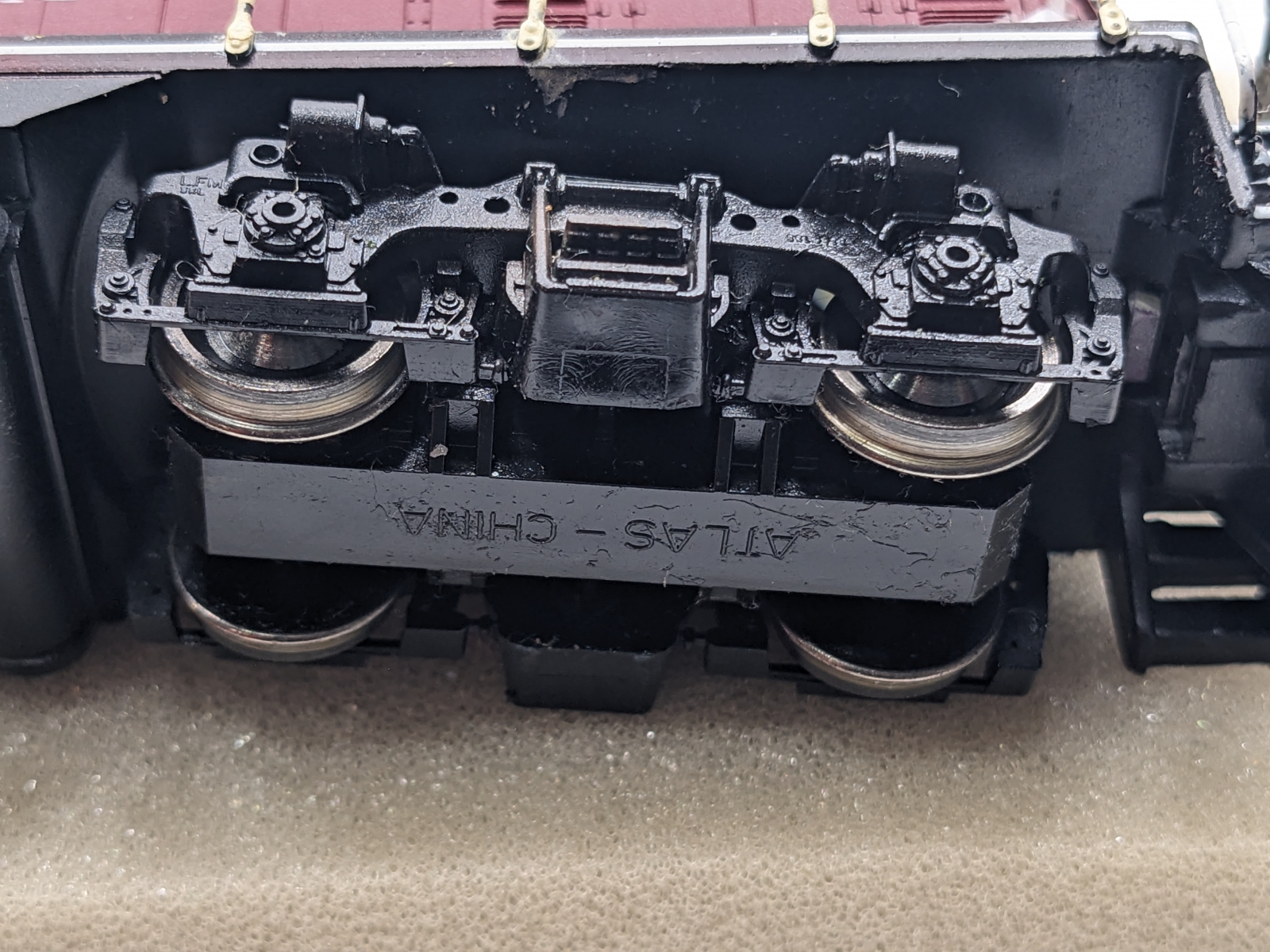Custom painted, decently done. Some wear and small issues but overall pretty good shape. DC, runs nicely both directions. Front & rear headlights work (ditch lights are jewels). Metal knuckle couplers. Includes packaging and paperwork. Description: