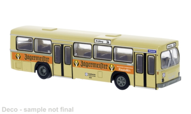 Brekina 59154 HO 1:87 , Buessing BS 110 V, 1970, Frankfurt - Jaegermeister, Manufacturer: Brekina