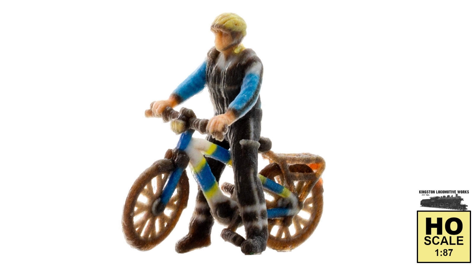 Bicycle police officer for realistic city and operational scenes The colourful 3D-printed “bicycle policeman” brings movement and safety to your model railway layout or diorama. The modern figure shows a policeman on a bicycle – wearing a helmet and uniform – perfect for creating realistic street scenes, parks or event venues. Thanks to precise 3D printing, all details such as the uniform, bicycle equipment, and posture are reproduced cleanly and realistically – without any post-processing or painting. The figure blends harmoniously into inner-city areas, pedestrian zones, or operational scenes, adding liveliness and authenticity. Designed for H0 gauge, the “Bicycle Policeman” can be used individually or in combination with other figures to create varied and credible scenes. GTIN/EAN: 4007246106103 Gauge: H0 Scale: 1:87 (H0) Product Notices: 3D color Genus: Human Material: Plastic Position: moves, sitting Gender: male Phase of life: Adult *** Photos may show additional scenery, structures, figures, vehicles, tools, etc which are not included. Please ask before ordering if you're unsure what's included. *** Gauge: H0 Scale: 1:87 (H0) Product Notices: 3D color Genus: Human Material: Plastic Position: moves, sitting Gender: male Phase of life: Adult UPC: 4007246106103