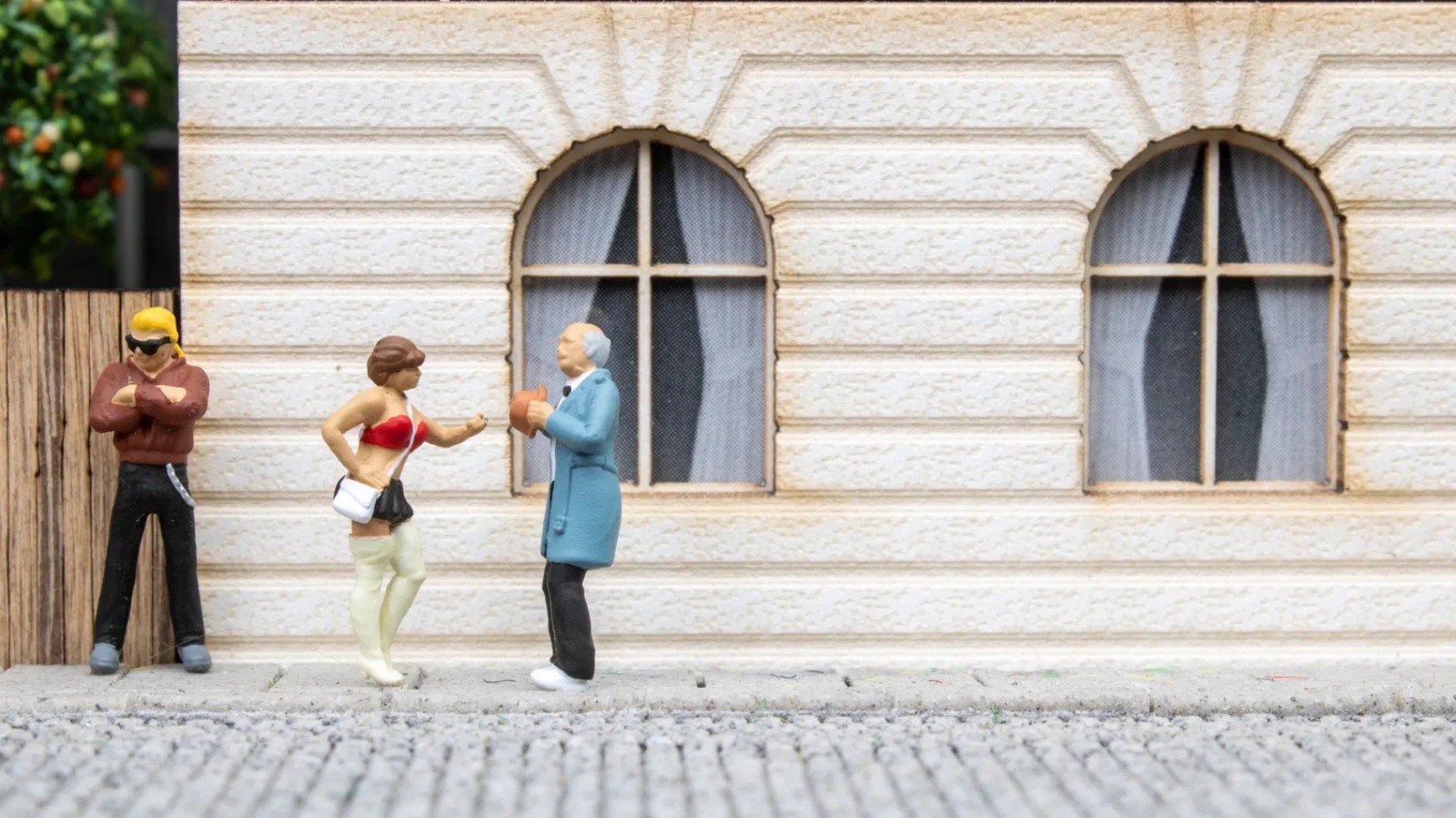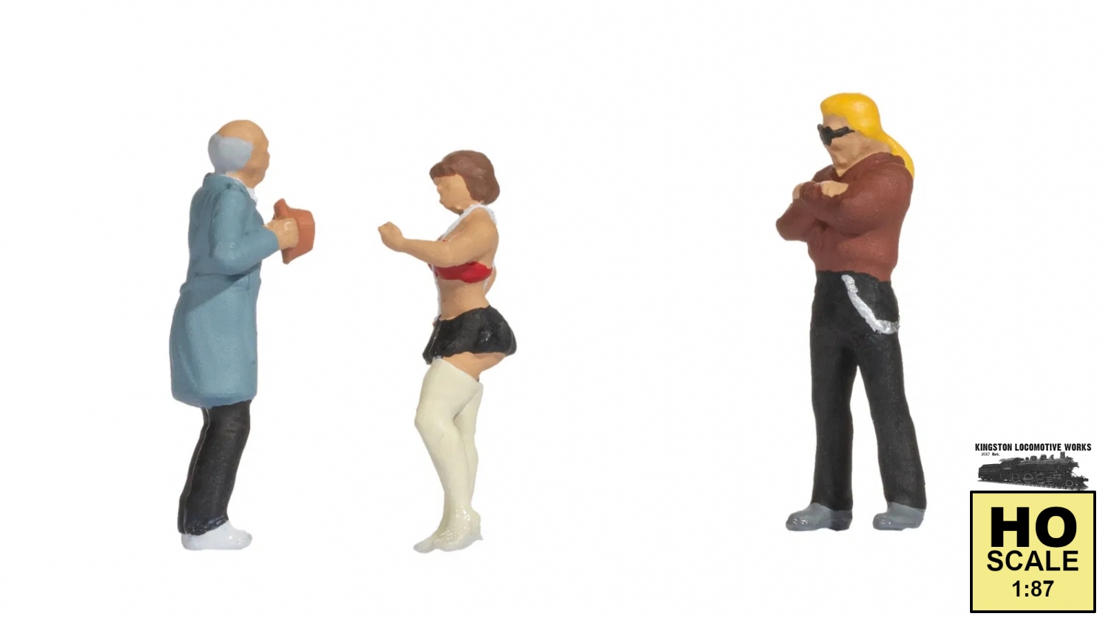 With Funny-Scenes ‘Kerb Crawling Area’ NOCH brings a daring and humorous scene for your model railway layout! This set shows what is happening on a street at night: An elderly gentleman looks embarrassed while a self-confident lady in a short outfit and striking pose seeks a conversation. Another man stands next to them with his arms crossed and a scrutinizing look on his face, as if he is observing the situation closely. This scene is ideal for the design of urban areas or dubious street corners and will bring a smile and conversation to your installation. Funny-Scenes ‘Kerb Crawling Area’ brings a touch of urban life and a humorous note to your model landscape. NOCH stands for lovingly designed figures with attention to detail and character *** Photos may show additional scenery, structures, figures, vehicles, tools, etc which are not included. Please ask before ordering if you're unsure what's included. *** UPC: 4007246166084