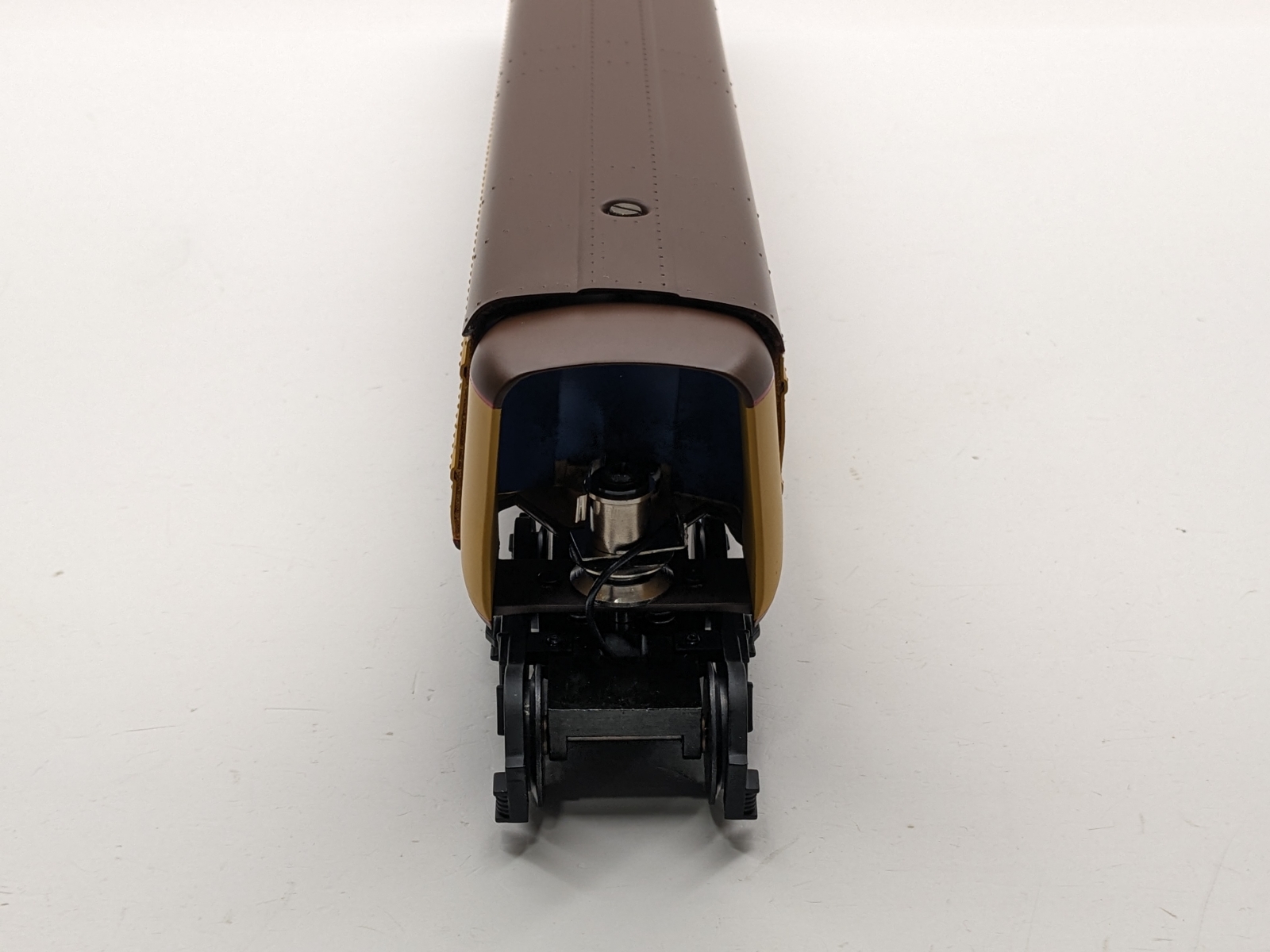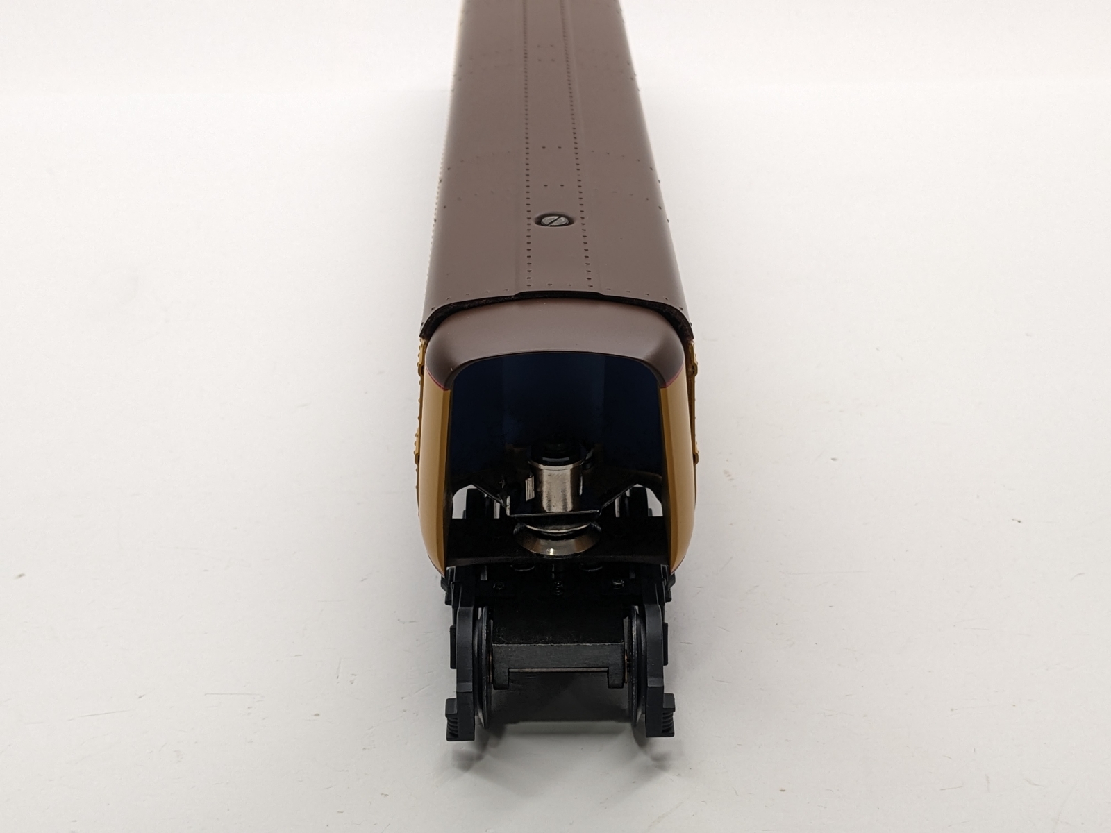 Light wear but looks to be in very good condition. Some small paint chips where the bogies articulate and contact the body but not visible once on the track. Interior details with figures and lighting. Includes original packaging. Please note that this does not have couplers and requires other cars from this set to operate. Description: