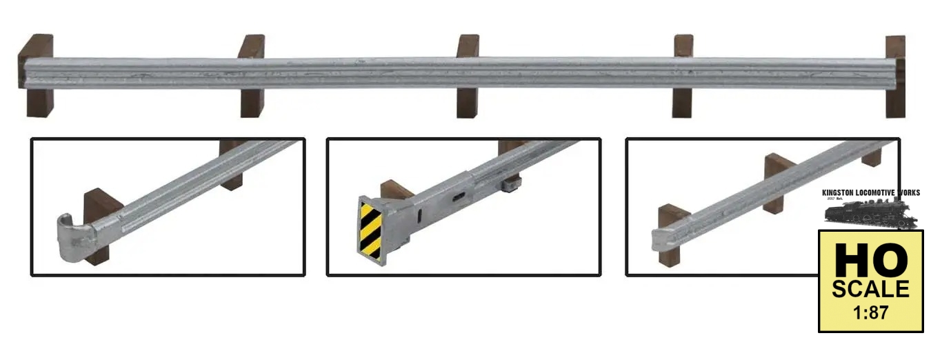 Protect HO drivers from all sorts of roadside obstacles with the SceneMaster Roadway Guard Rail Kit. A must-have for modern streets and highways, and designed for easy construction and customizing, features include: Build with blunt, rounded or square terminal ends - all 3 styles included! Modern W-beam style side rails Separate intermediate and joint posts with block detail Build up to 200 scale feet (60.9m) of Guardrail - easily expanded by combining kits (each sold separately) Molded in gray plastic UPC: 616374162284